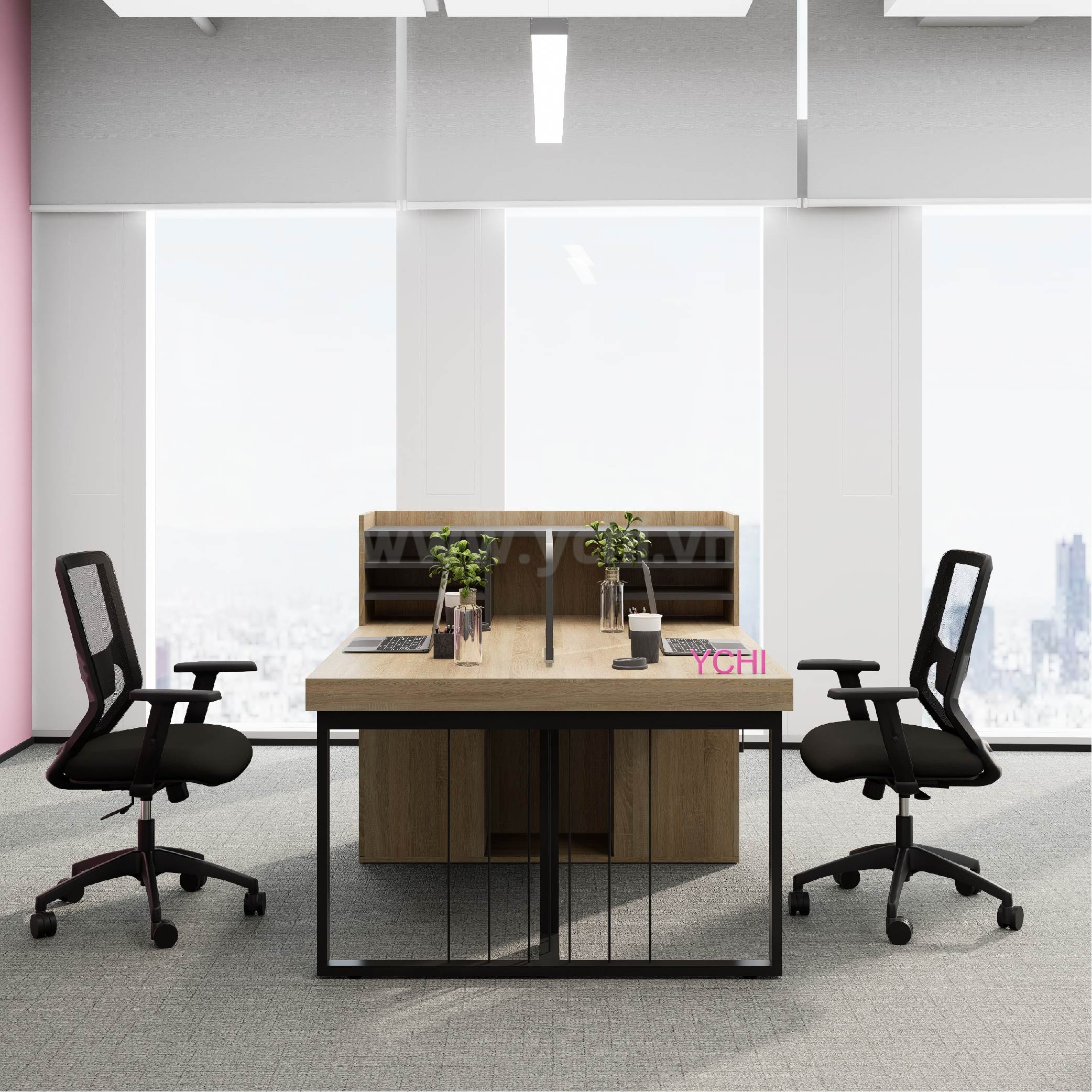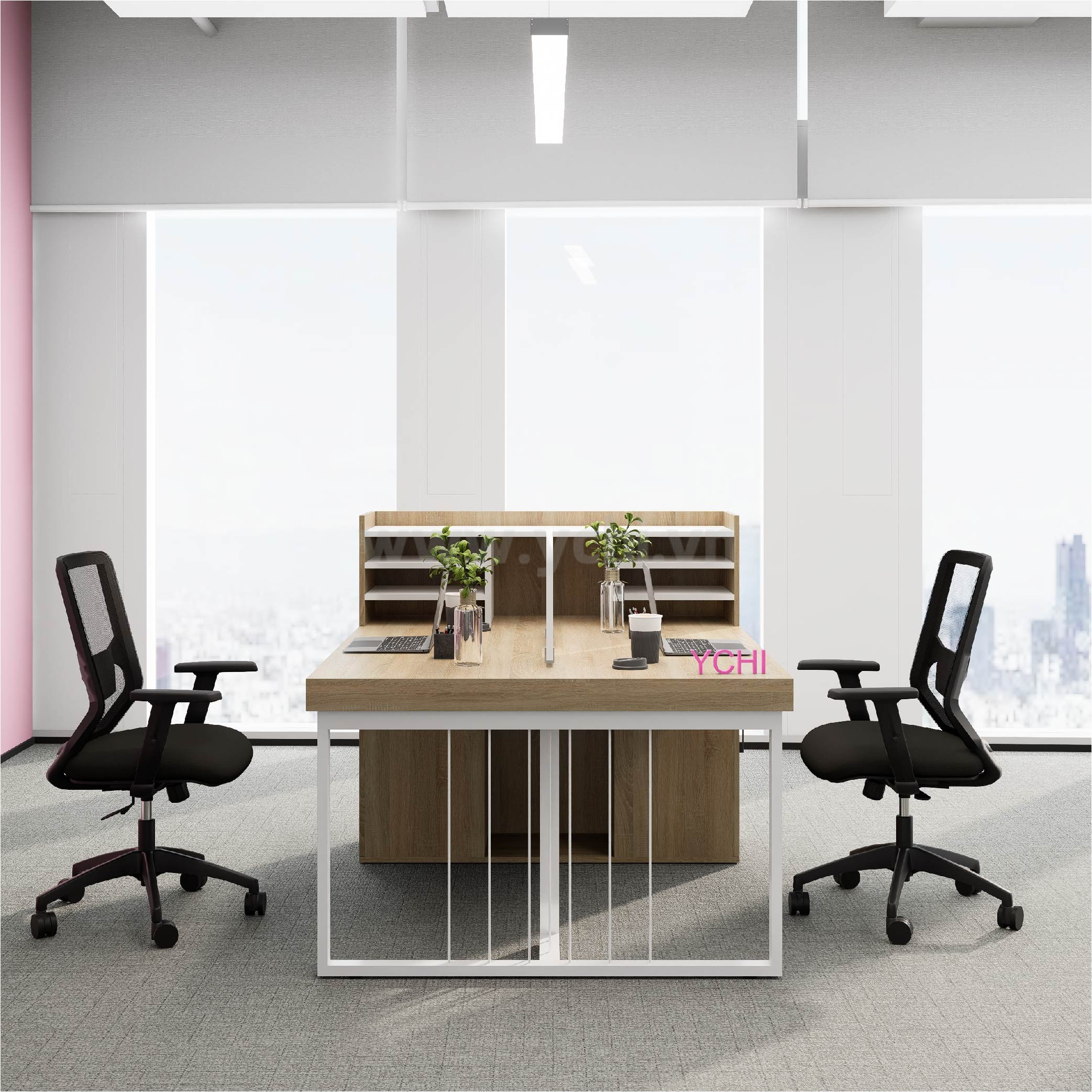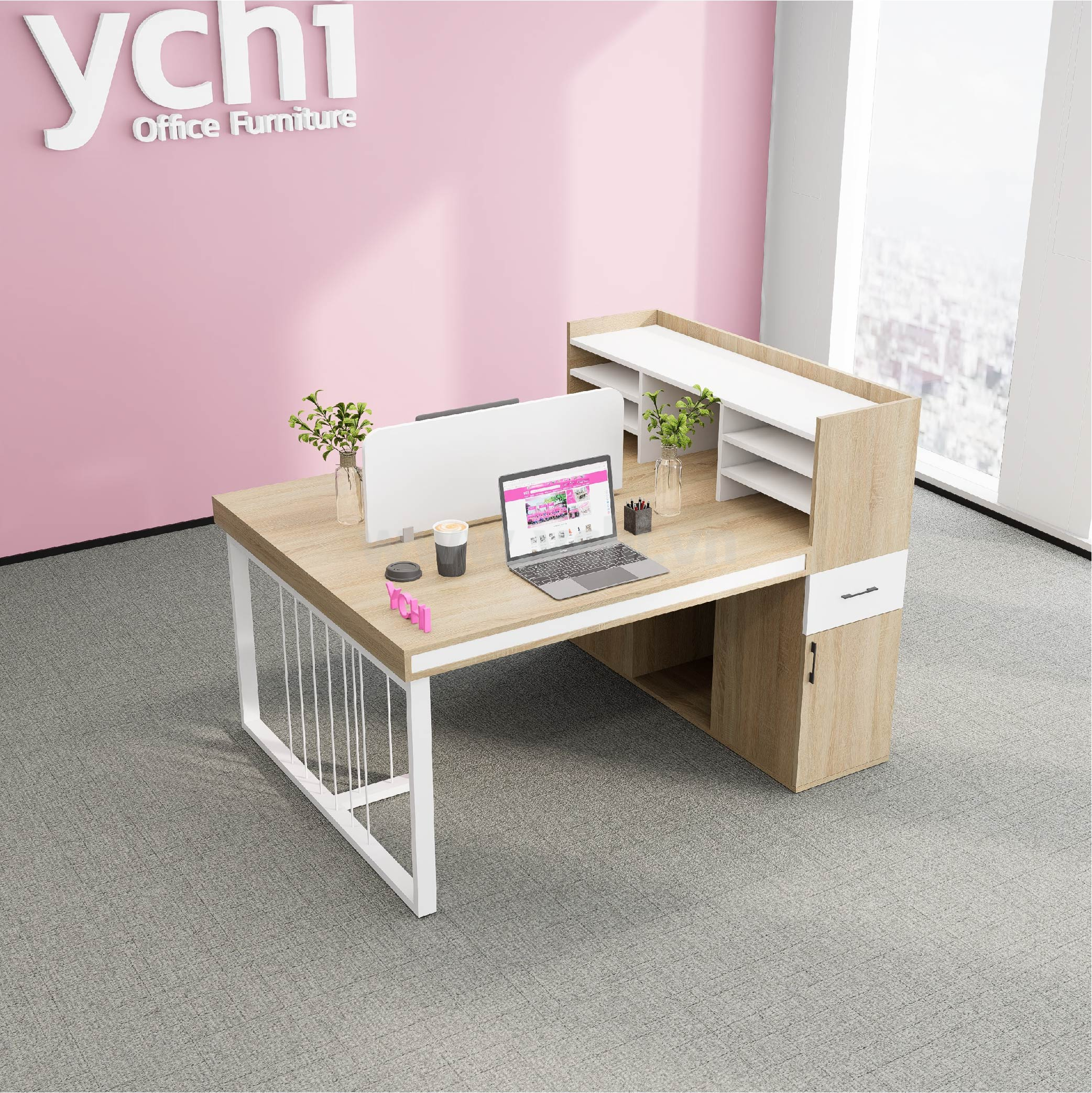 Bàn bao gồm vách ngăn trên mặt bàn, lỗ dẫn điện tròn (không bắt buộc)