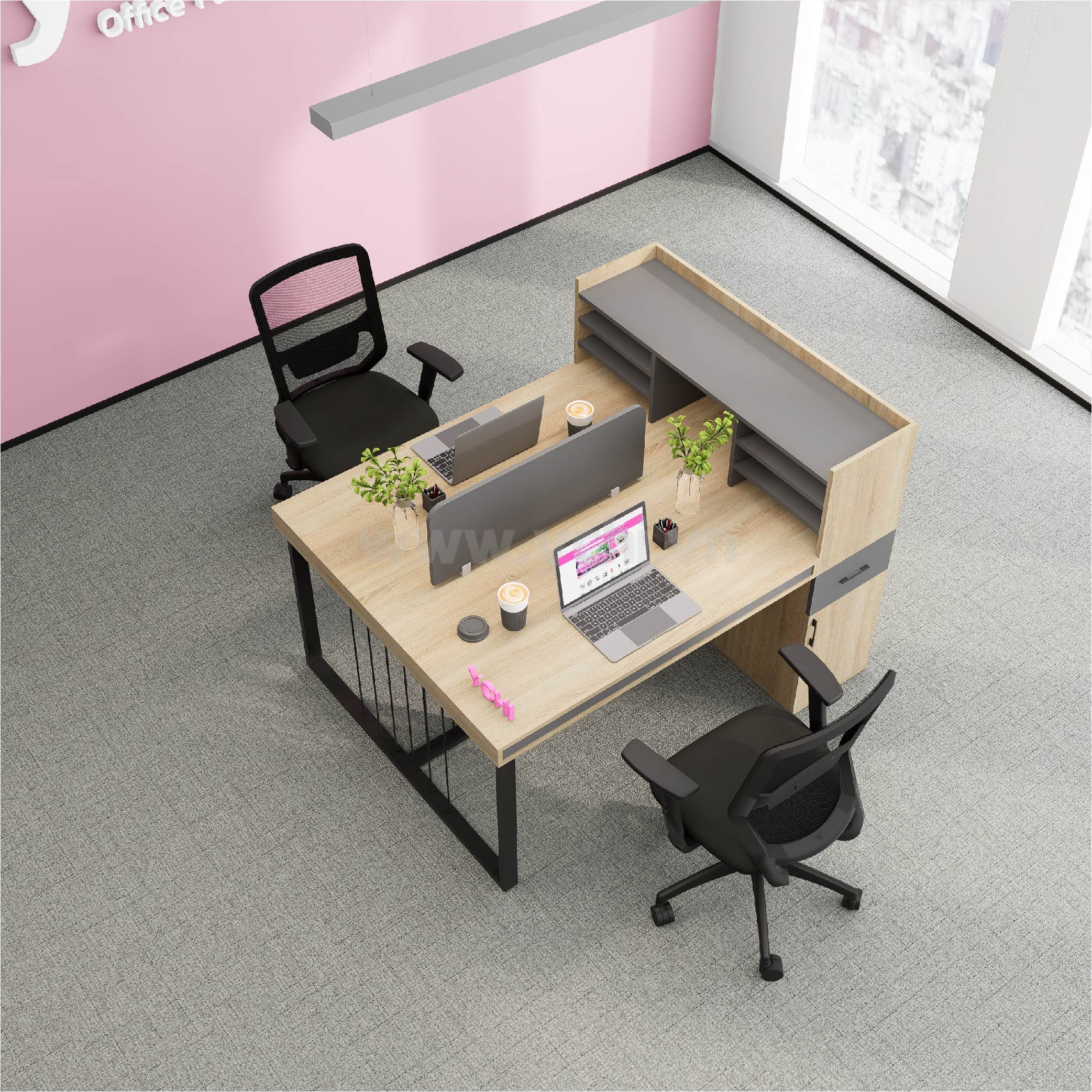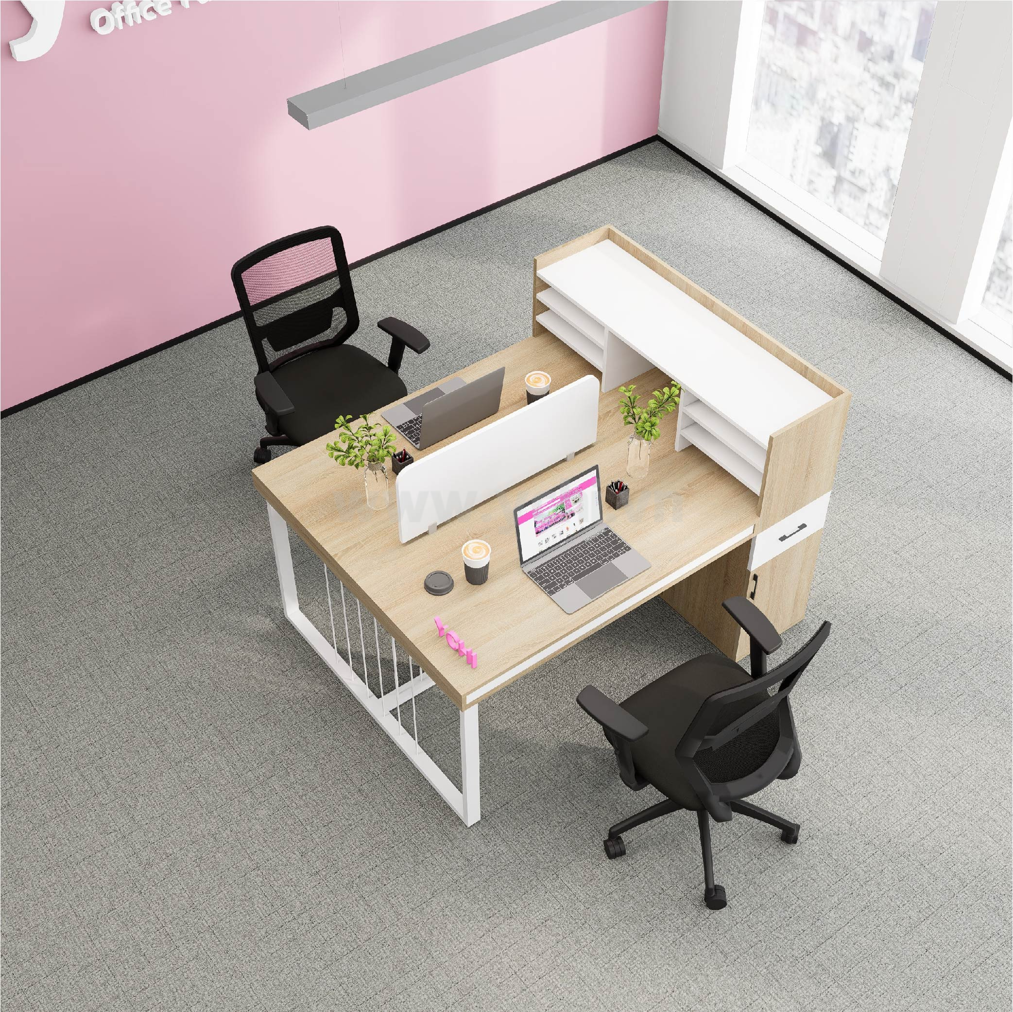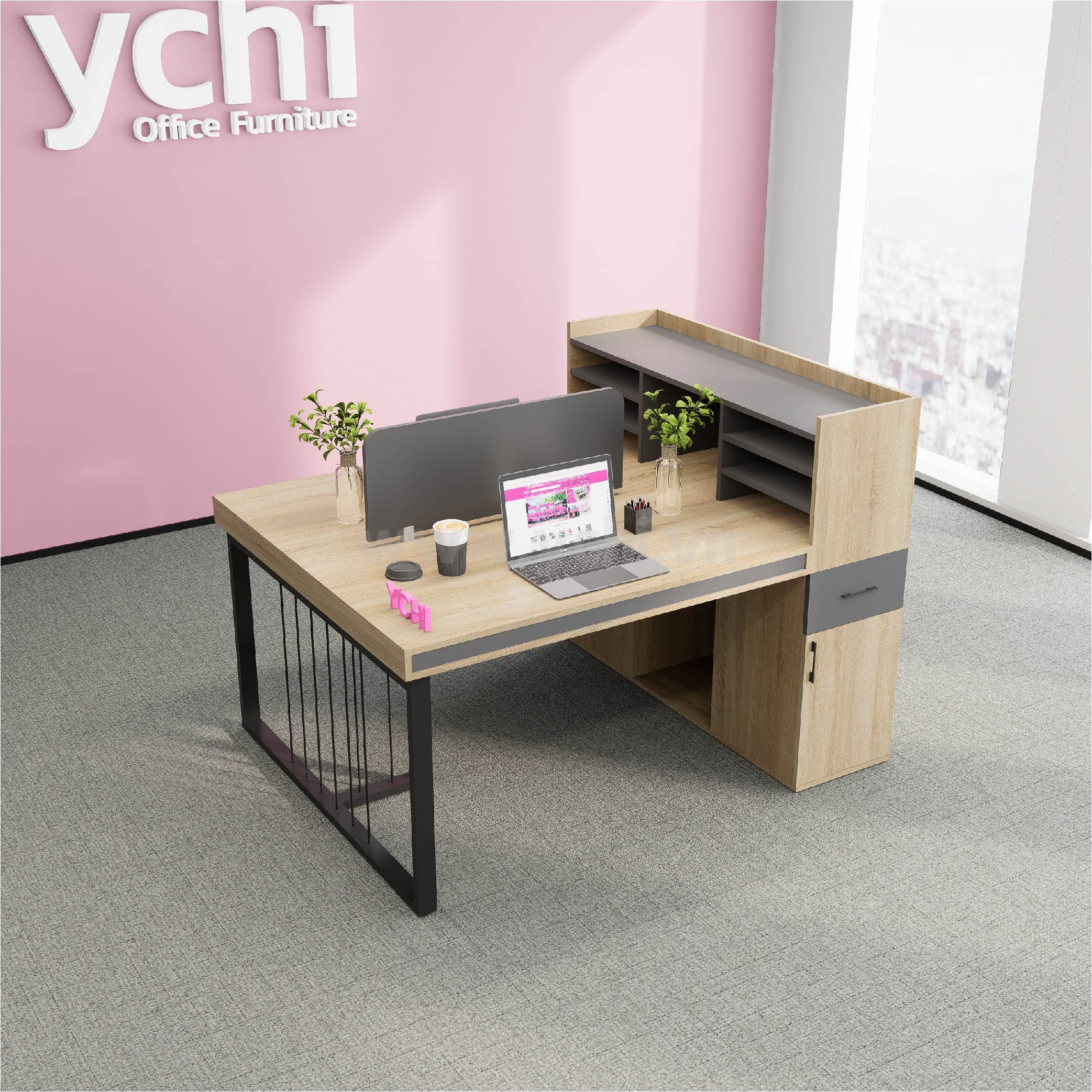 Bàn bao gồm vách ngăn trên mặt bàn, lỗ dẫn điện tròn (không bắt buộc)
