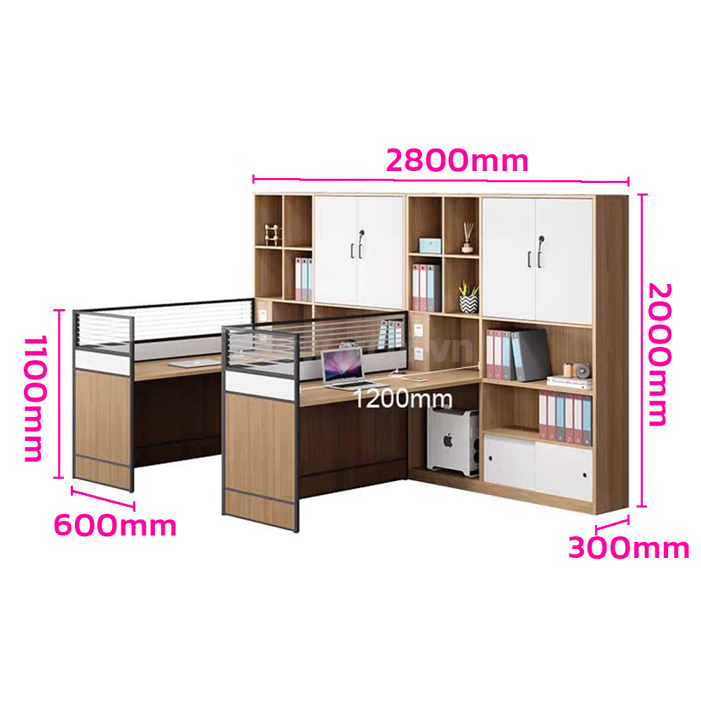 Sản phẩm gồm mặt bàn, vách ngăn bàn, tủ di động.