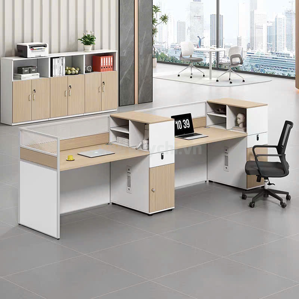 Cụm Bàn Làm Việc 2 Người Không Gian Panel Space YCHIJS061 giúp cho nhân viên có khoảng không gian riêng để tập trung làm việc, từ đó mà năng suất công việc cũng được nâng cao. Lúc cần trao đổi thông tin liên quan đến công việc, những cụm bàn chia ngăn lại trở thành không gian để có thể họp bàn, trao đổi thông tin một cách thuận lợi và nhanh chóng. Chất liệu gỗ MDF phủ Melamine sở hữu nhiều ưu việt như chống trầy, chống nước, bền màu cho không gian làm việc chuyên nghiệp, kết hợp hệ khung vách ngăn nhôm định hình 50, sơn tĩnh điện, đảm bảo độ bền cao, tạo nên một kết cấu vững chắc, an tâm sử dụng.