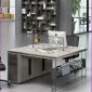 Bàn bao gồm: 1 tủ 2 mặt dưới bàn, 1 vách ngăn, lỗ dẫn điện trên mặt bàn