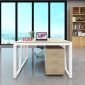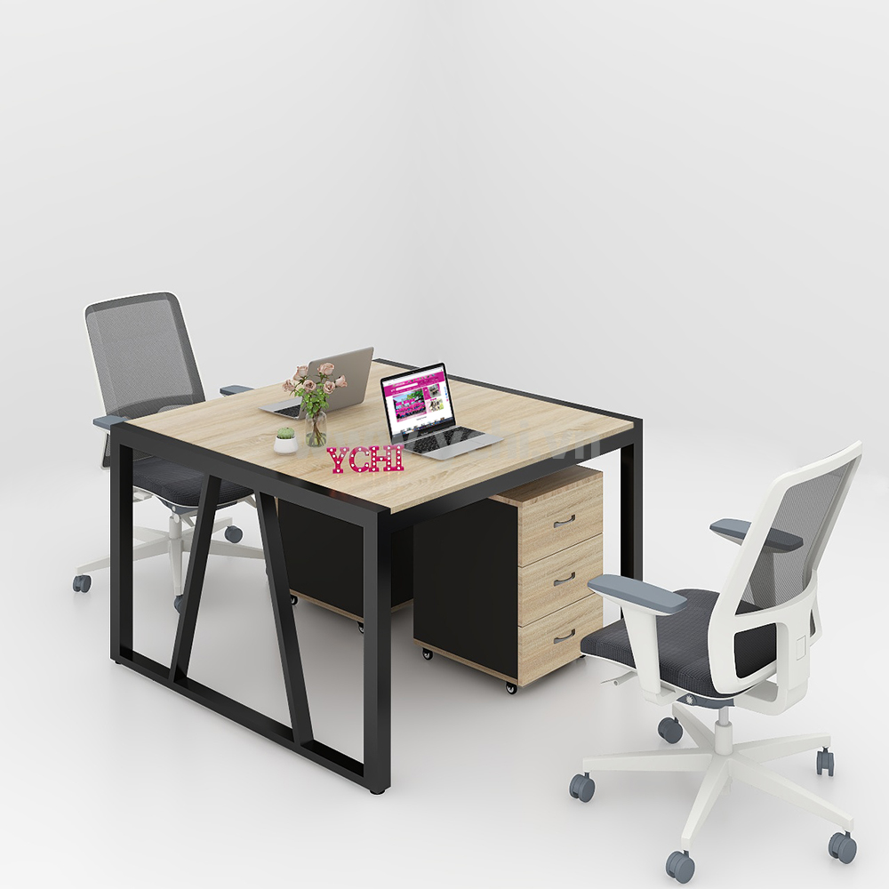 Cụm Bàn Làm Việc 2 Người Không Gian V Space YCHIVS002 với mặt bàn và chân tủ được làm từ gỗ MDF phủ Melamine cho bề mặt sản phẩm rất đẹp mắt, chống nước. Kết hợp hệ khung chân thép sơn tĩnh điện chống ăn mòn hoá học, đảm bảo độ bền cao.