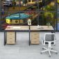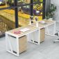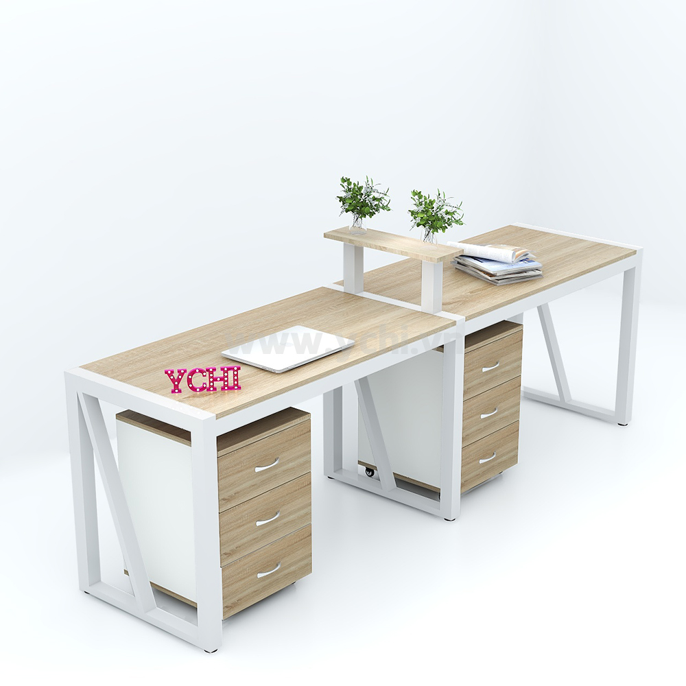 Cụm Bàn Làm Việc 2 Người Không Gian V Space YCHIVS003 với mặt bàn và chân tủ được làm từ gỗ MDF phủ Melamine cho bề mặt sản phẩm rất đẹp mắt, chống nước. Kết hợp hệ khung chân thép sơn tĩnh điện chống ăn mòn hoá học, đảm bảo độ bền cao.