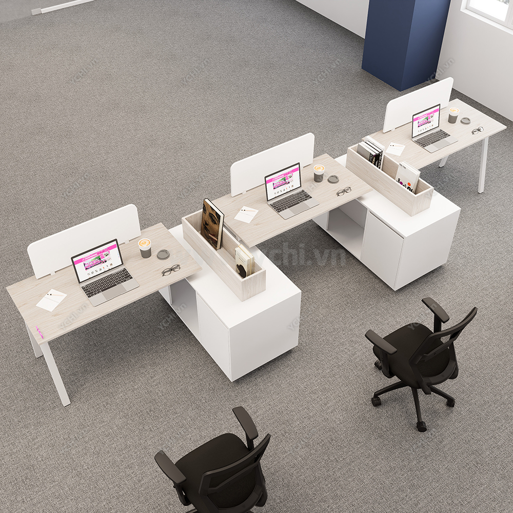 Cụm Bàn Làm Việc 3 Người Không Gian Atom Space YCHIAS033 có nhiều kích thước khác nhau và nhiều màu sắc để khách hàng quyết định. Bảng màu sắc được cập nhật thường xuyên đảm bảo bắt kịp xu hướng nội thất mới. Đội ngũ nhân viên tư vấn chuyên nghiệp của YCHI luôn sẵn sàng hỗ trợ khách hàng, đưa ra những lời khuyên hữu ích để bạn có sản phẩm ưng ý nhất. Liên hệ Zalo bên cạnh hoặc gọi trực tiếp Hotline 0974.590.827, YCHI luôn sẵn sàng giải đáp các câu hỏi của khách hàng.