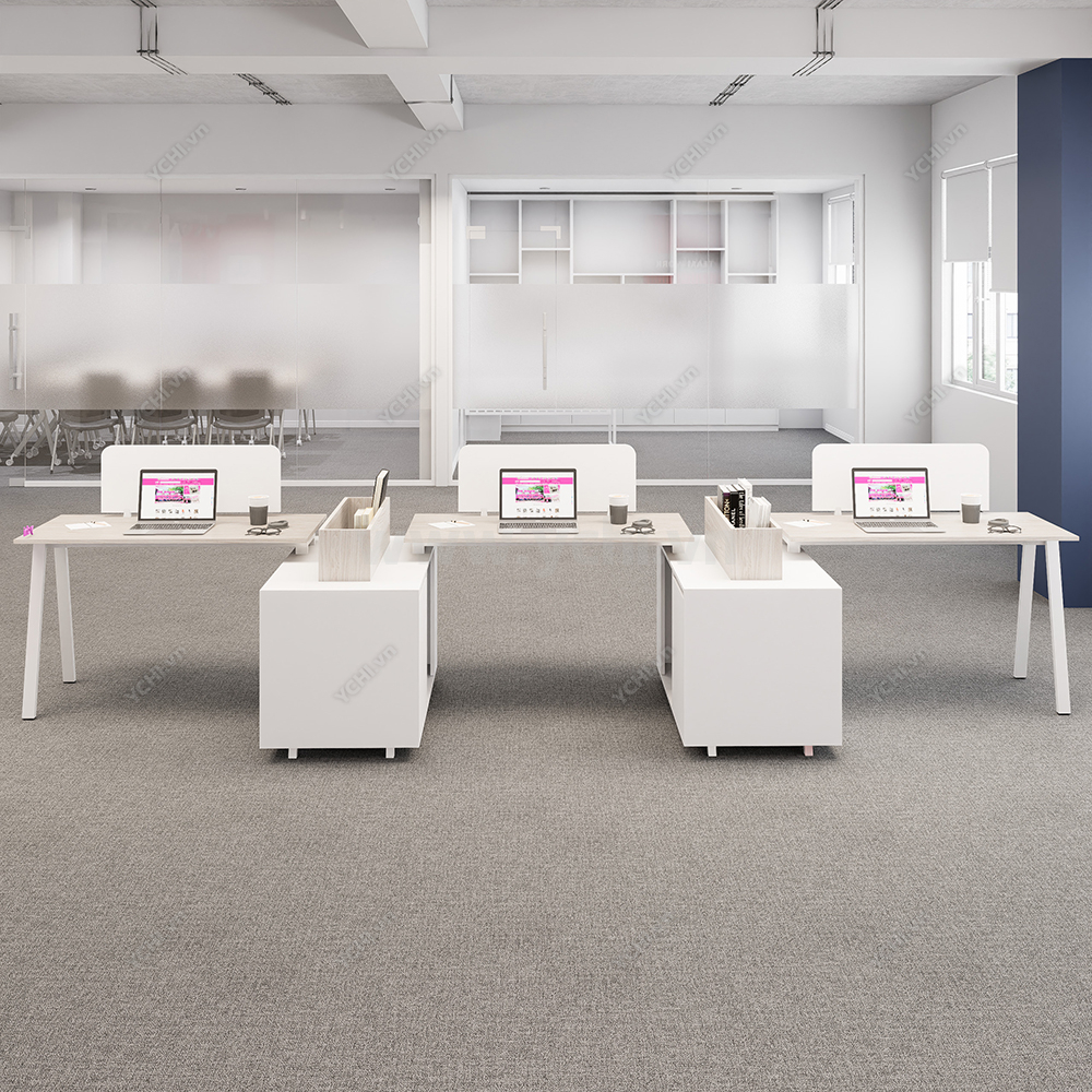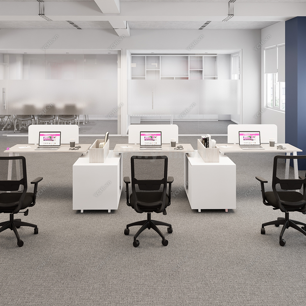 Cụm Bàn Làm Việc 3 Người Không Gian Atom Space YCHIAS033 mang phong cách hiện đại, thiết kế cổ điển, vuông vức, làm cho không gian văn phòng trở nên sang trọng, lịch lãm, đẳng cấp. Đặc biệt, thiết kế mang đến sự hoàn hảo trong không gian sử dụng, có thể kết hợp với tủ di động để tối ưu không gian lưu trữ.