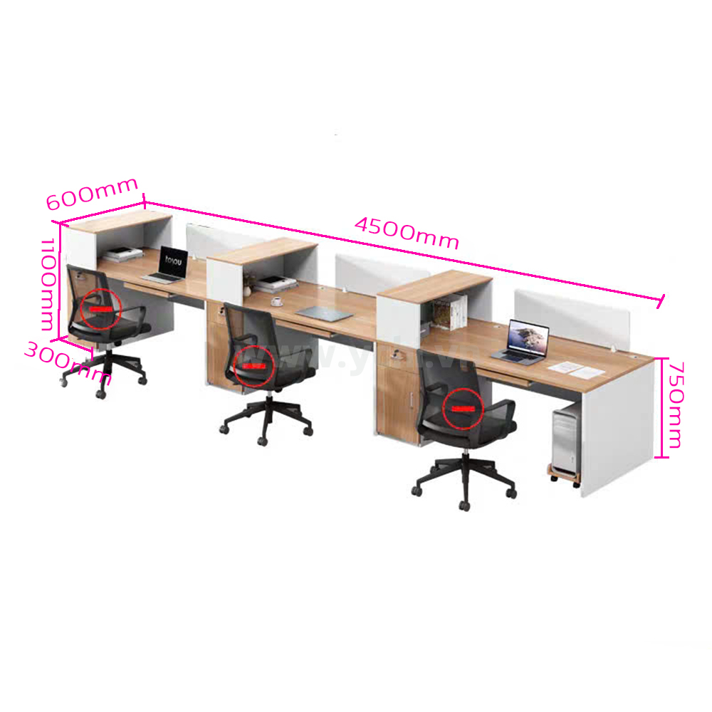 Thông số sản phẩm Cụm Bàn Làm Việc 3 Người Không Gian Multi Space YCHIMS040
