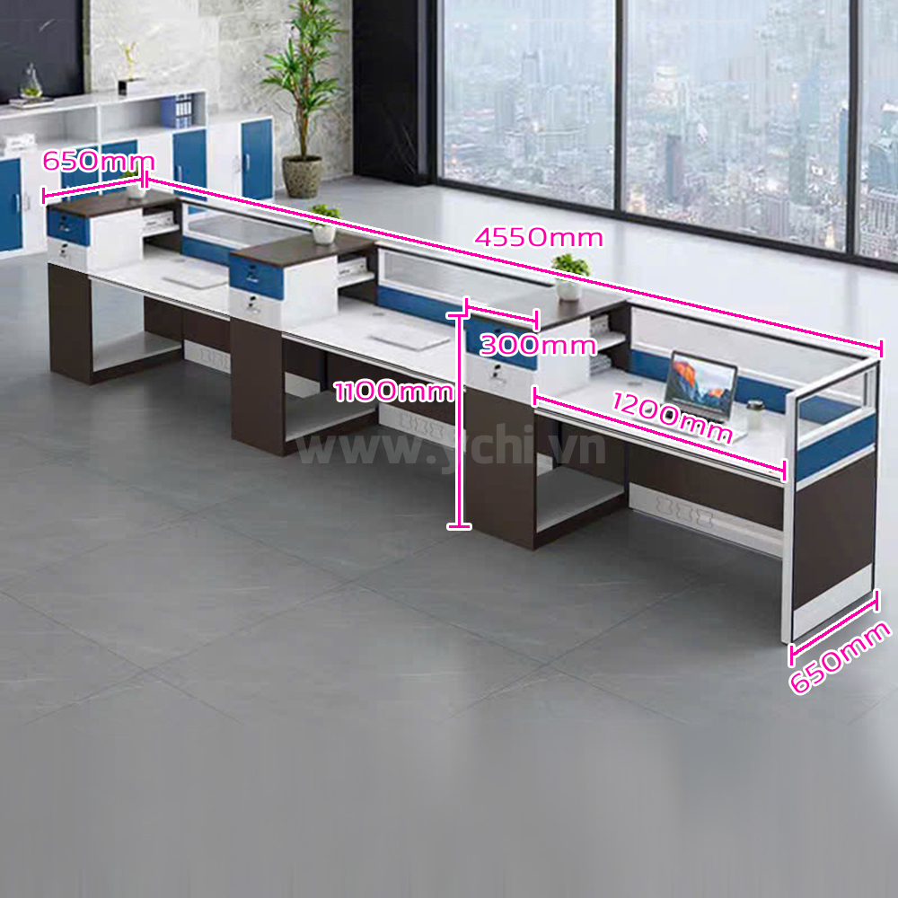 Cụm Bàn Làm Việc 3 Người Không Gian Panel Space YCHIJS093 có nhiều kích thước khác nhau và nhiều màu sắc để khách hàng quyết định. Bảng màu sắc được cập nhật thường xuyên đảm bảo bắt kịp xu hướng nội thất mới. Đội ngũ nhân viên tư vấn chuyên nghiệp của YCHI luôn sẵn sàng hỗ trợ khách hàng, đưa ra những lời khuyên hữu ích để bạn có sản phẩm ưng ý nhất. Liên hệ Zalo bên cạnh hoặc gọi trực tiếp Hotline 0974.590.827, YCHI luôn sẵn sàng giải đáp các câu hỏi của khách hàng.