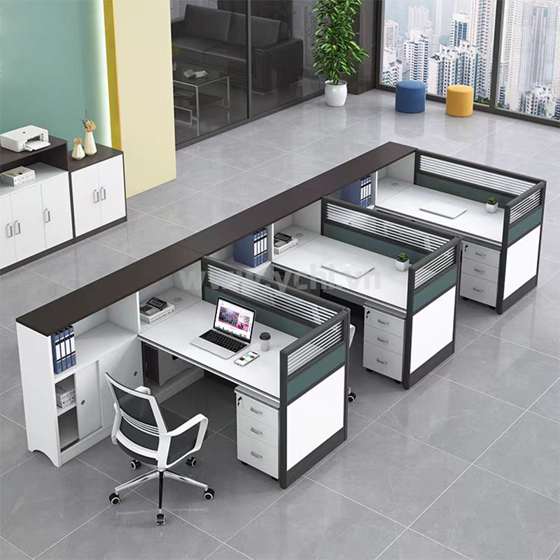 Sản phẩm gồm mặt bàn, vách ngăn bàn, tủ di động.