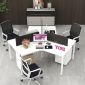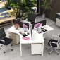 Cụm Bàn Làm Việc 3 Người Không Gian U Space YCHIUS005 mang phong cách hiện đại, thiết kế cổ điển, vuông vức, làm cho không gian văn phòng trở nên sang trọng, lịch lãm, đẳng cấp. Đặc biệt, thiết kế mang đến sự hoàn hảo trong không gian sử dụng, có thể kết hợp với tủ di động để tối ưu không gian lưu trữ.