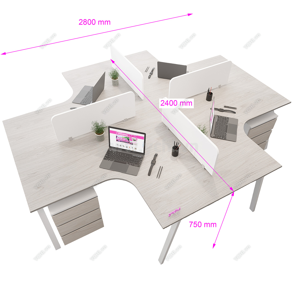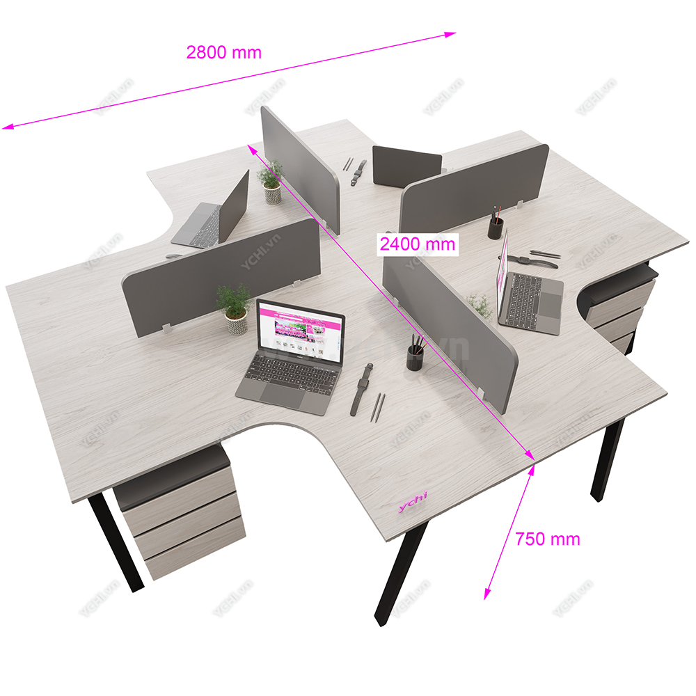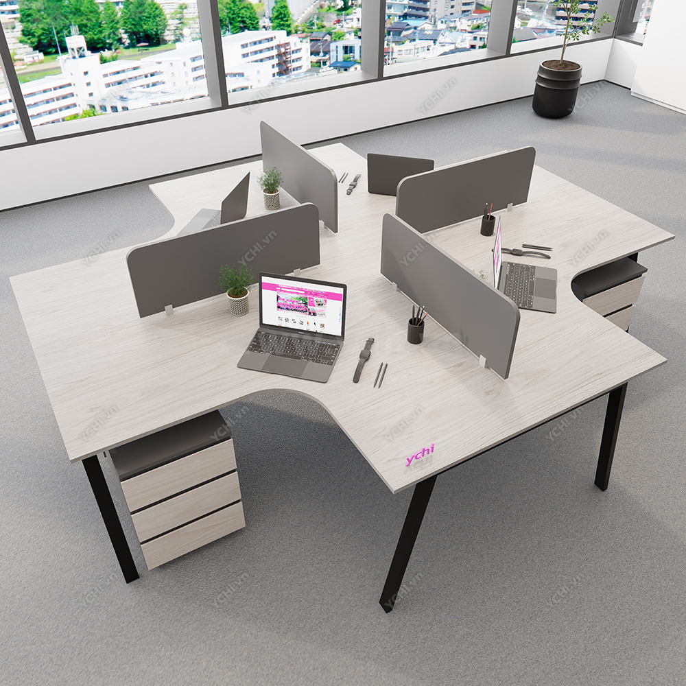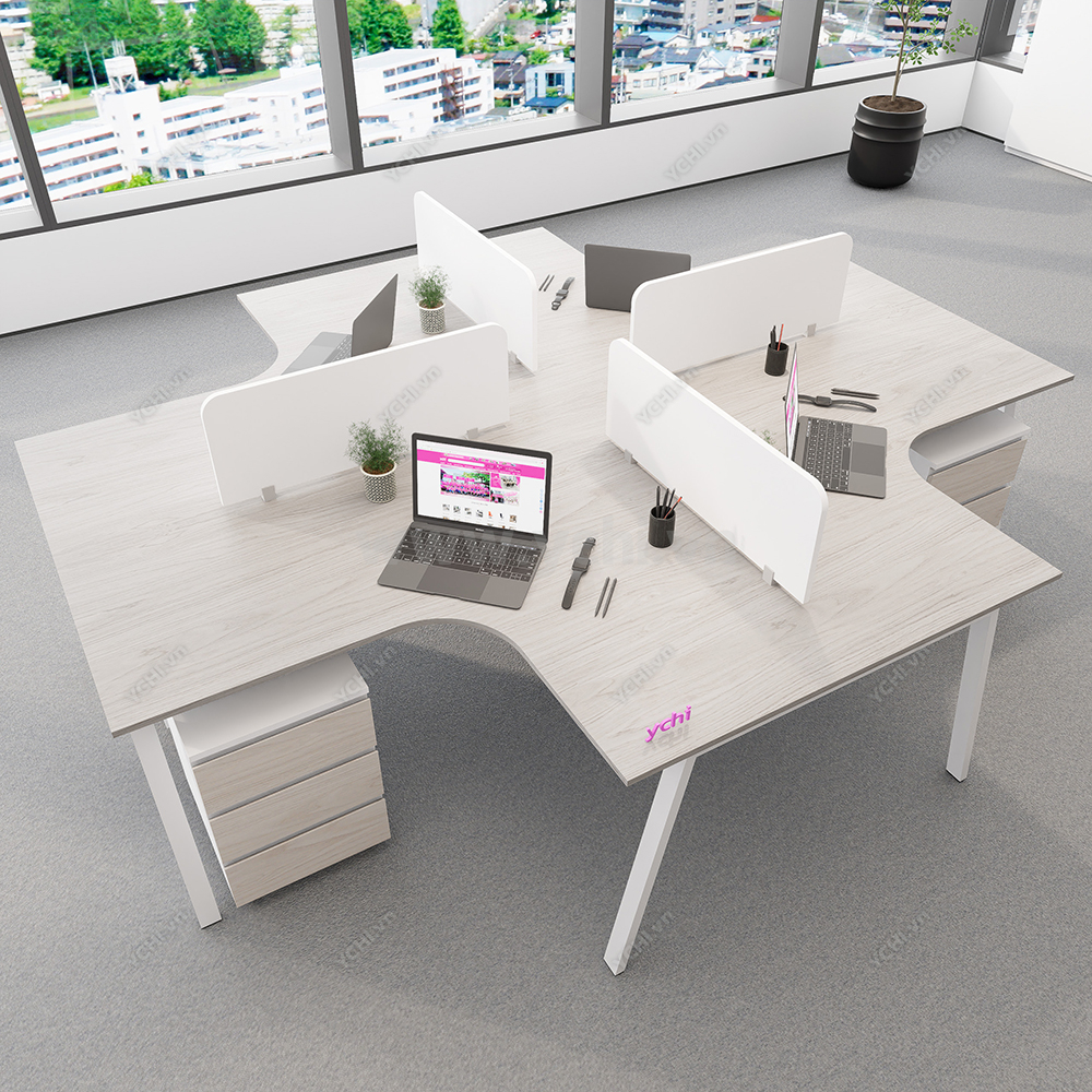 Cụm Bàn Làm Việc 4 Người Không Gian Atom Space YCHIAS035 có nhiều kích thước khác nhau và nhiều màu sắc để khách hàng quyết định. Bảng màu sắc được cập nhật thường xuyên đảm bảo bắt kịp xu hướng nội thất mới. Đội ngũ nhân viên tư vấn chuyên nghiệp của YCHI luôn sẵn sàng hỗ trợ khách hàng, đưa ra những lời khuyên hữu ích để bạn có sản phẩm ưng ý nhất. Liên hệ Zalo bên cạnh hoặc gọi trực tiếp Hotline 0974.590.827, YCHI luôn sẵn sàng giải đáp các câu hỏi của khách hàng.