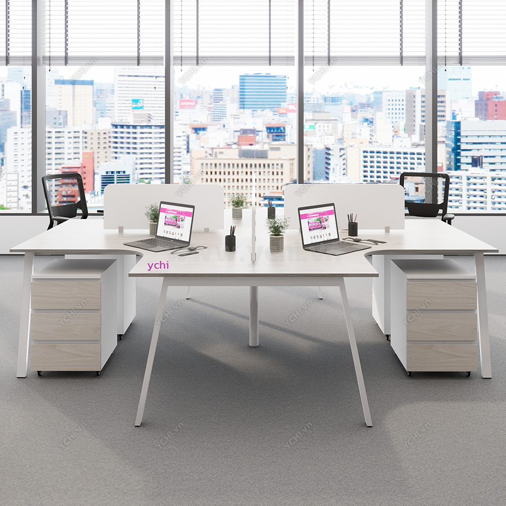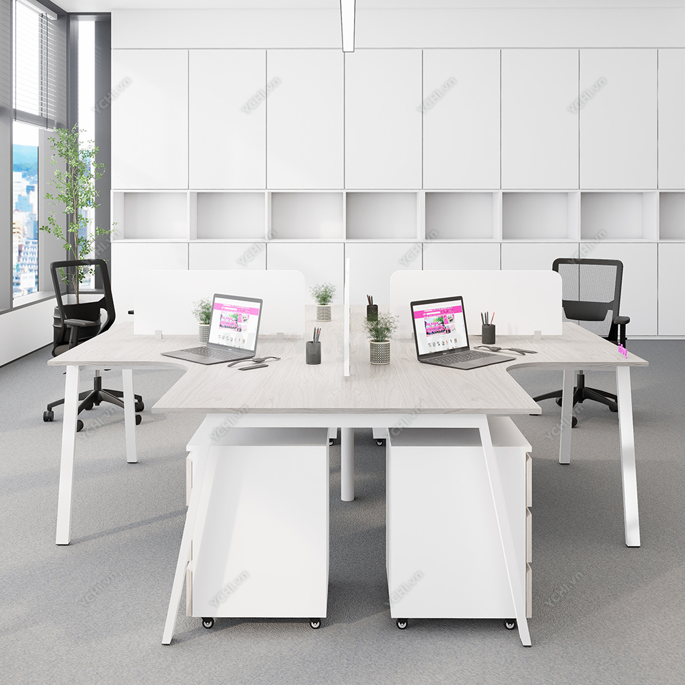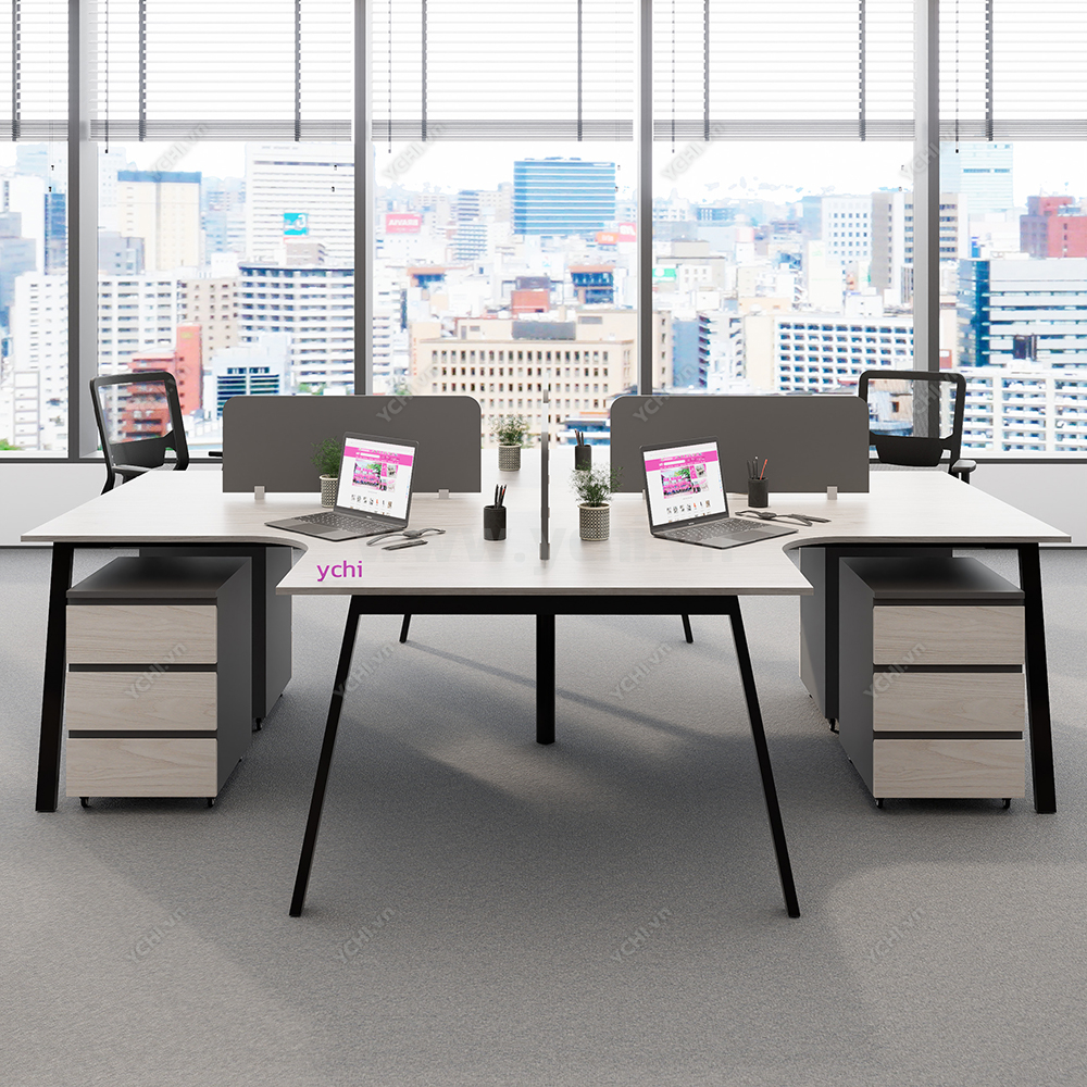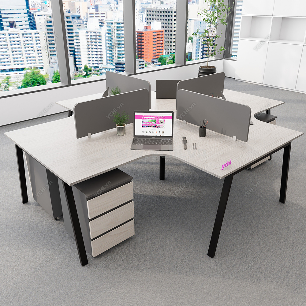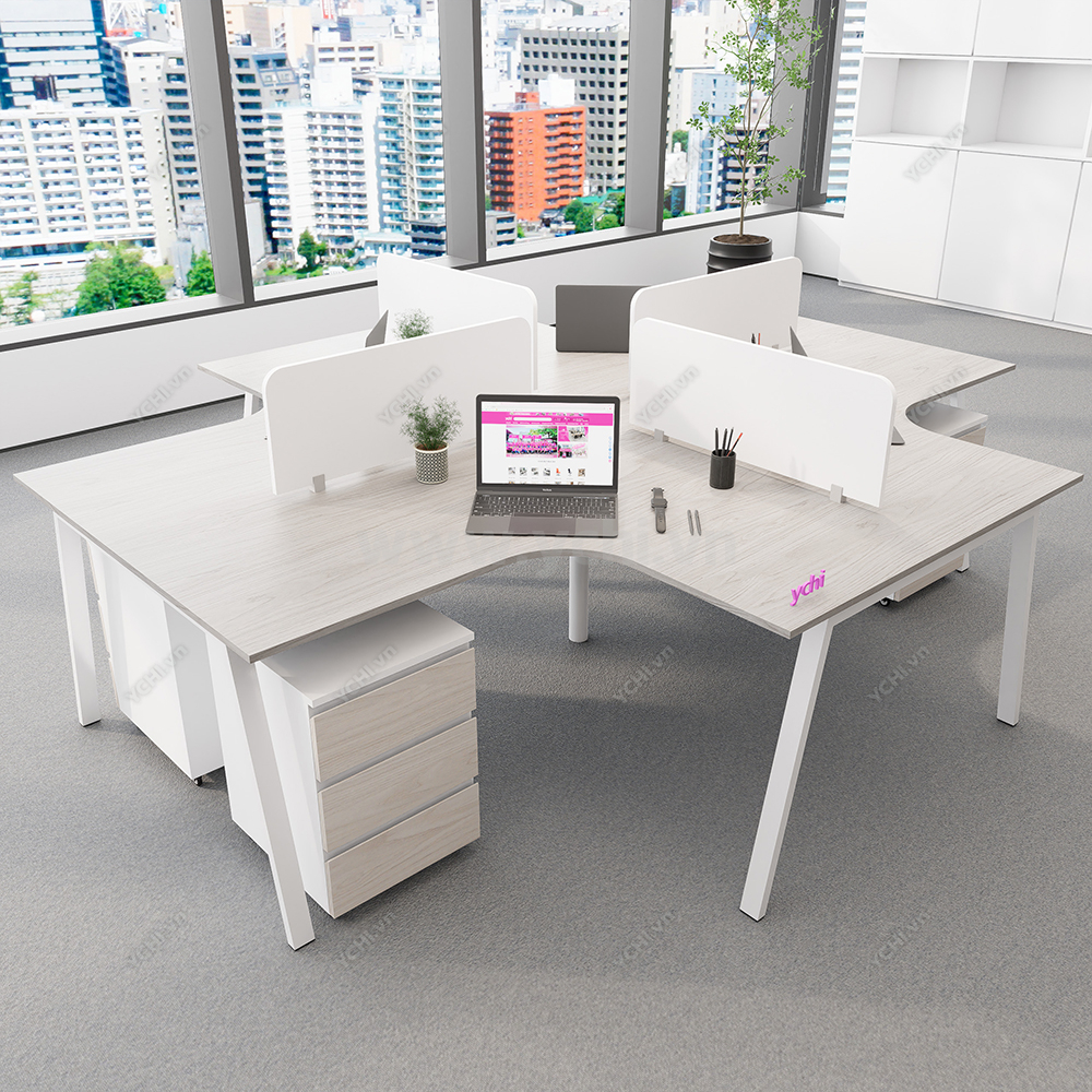 Tối ưu hóa sự cộng tác và thắt chặt tính kết nối đội ngũ, Cụm Bàn Làm Việc 4 Người Không Gian Atom Space YCHIAS035 hiện diện như một trung tâm điều hành thu nhỏ, đầy năng động trong lòng văn phòng hiện đại. Được định hình theo cấu trúc đối xứng hoàn hảo, bộ sản phẩm sử dụng mặt bàn gỗ màu sồi sáng thanh lịch, kết hợp cùng hệ khung chân sắt chữ A sơn tĩnh điện trắng, mang lại cảm giác mở rộng và tràn đầy năng lượng cho không gian chung. Điểm sáng giá nhất của thiết kế chính là hệ thống vách ngăn kính mờ tinh tế, vừa tạo ra ranh giới cá nhân giúp tập trung chuyên sâu, vừa không ngăn cách tầm nhìn, hỗ trợ đắc lực cho các buổi thảo luận nhóm nhanh chóng. Sự tiện nghi được đẩy lên tối đa khi mỗi vị trí đều sở hữu một hộc tủ di động 3 ngăn đồng bộ, cho phép lưu trữ tài liệu linh hoạt và giữ cho mặt bàn luôn trong trạng thái gọn gàng nhất. Không chỉ dừng lại ở một món đồ nội thất, YCHI AS035 là giải pháp kiến trúc thông minh, biến mỗi giờ làm việc trở thành trải nghiệm chuyên nghiệp, tiện nghi và đầy cảm hứng sáng tạo cho doanh nghiệp.
