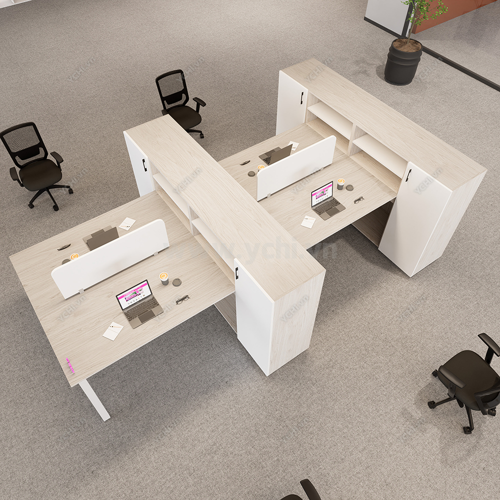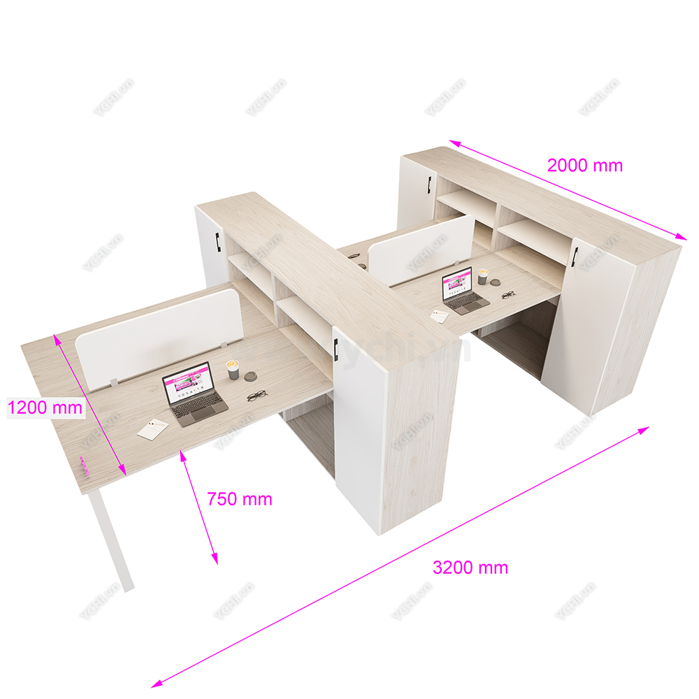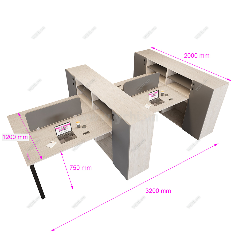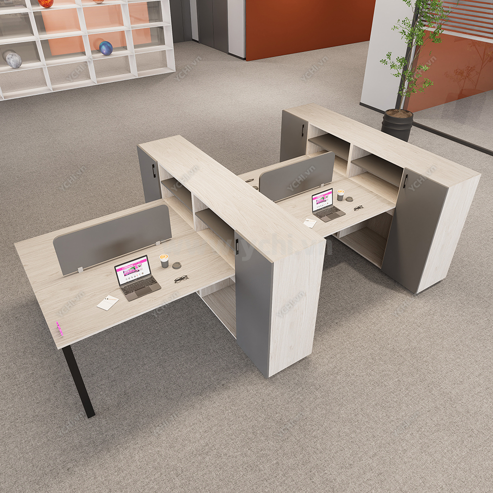 Cụm Bàn Làm Việc 4 Người Không Gian Atom Space YCHIAS046 mang phong cách hiện đại, thiết kế cổ điển, vuông vức, làm cho không gian văn phòng trở nên sang trọng, lịch lãm, đẳng cấp. Đặc biệt, thiết kế mang đến sự hoàn hảo trong không gian sử dụng, có thể kết hợp với tủ di động để tối ưu không gian lưu trữ.