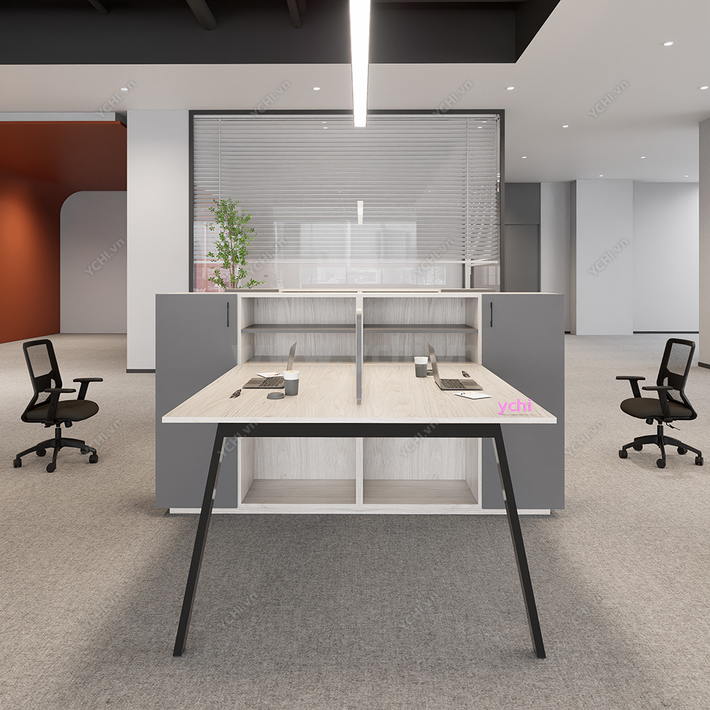 Được thiết kế để phá vỡ sự đơn điệu của không gian công sở truyền thống, Cụm Bàn Làm Việc 4 Người Không Gian Atom Space YCHIAS046 gây ấn tượng mạnh mẽ bởi sự tương phản đầy tinh tế giữa mặt bàn gỗ sồi sáng và hệ thống hộc tủ màu xám chì sang trọng. Điểm khác biệt cốt lõi nằm ở cấu trúc chân bàn "không chân sắt", thay vào đó là việc sử dụng trực tiếp các khối tủ tài liệu đa năng và vách gỗ dày dặn làm bệ đỡ trung tâm, tạo nên một chỉnh thể vô cùng vững chãi và kiên cố. Mỗi vị trí ngồi được bao bọc khéo léo bởi hệ vách ngăn lửng bo góc, mang lại cảm giác an tâm và riêng tư tuyệt đối để nhân sự phát huy tối đa năng lực cá nhân. Với sự tích hợp thông minh của khoang chứa CPU và ngăn kéo có khóa ngay dưới mặt bàn, YCHIAS046 không chỉ giải quyết triệt để bài toán lưu trữ mà còn kiến tạo nên một môi trường làm việc chuyên nghiệp, đẳng cấp, xứng đáng là mảnh ghép hoàn hảo cho những doanh nghiệp đang tìm kiếm sự đột phá trong văn hóa làm việc nhóm.