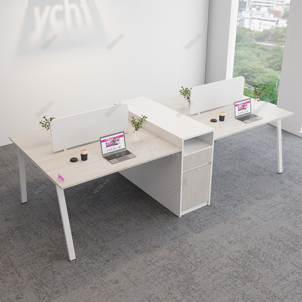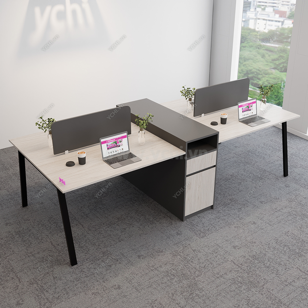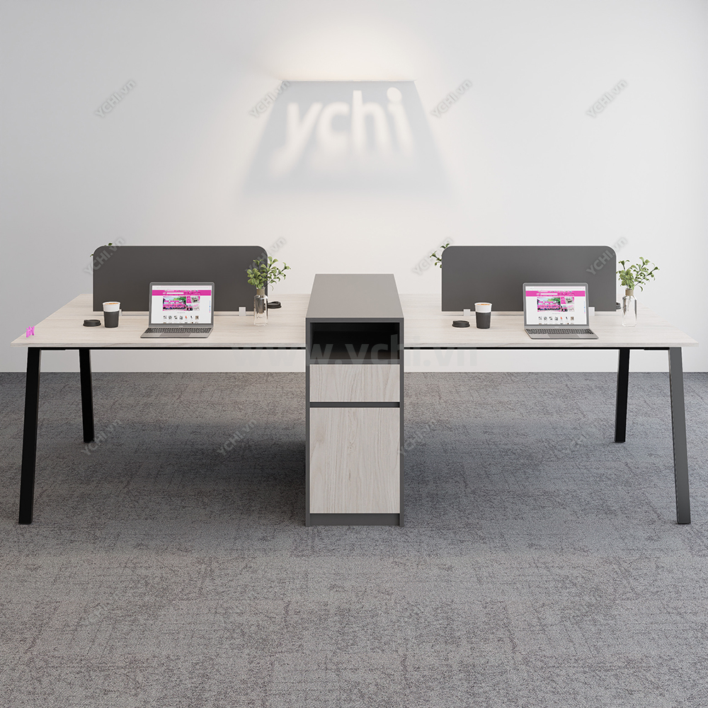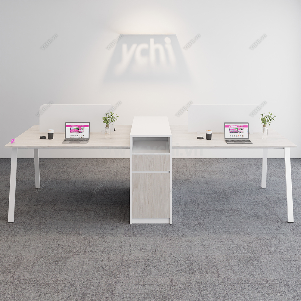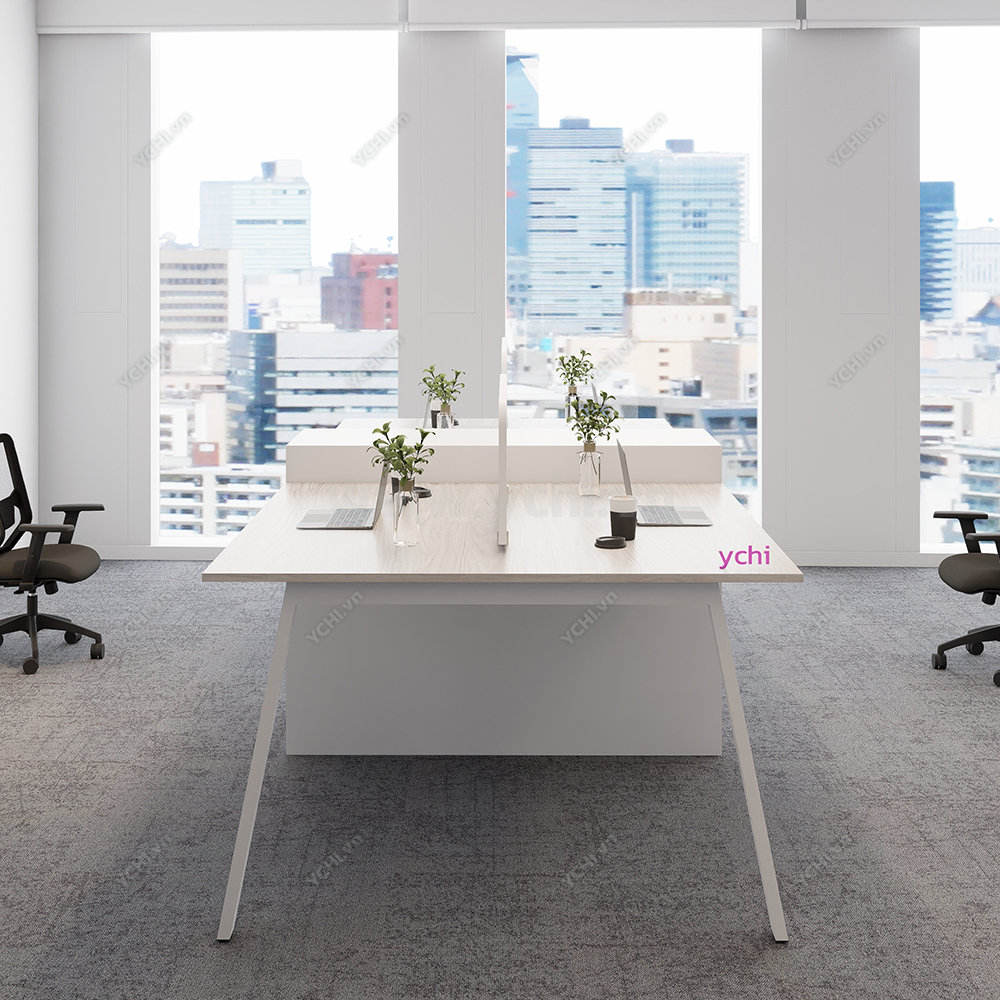 Được khơi nguồn từ ý tưởng về một văn phòng xanh và hiện đại, Cụm Bàn Làm Việc 4 Người Không Gian Atom Space YCHIAS048 kiến tạo nên một không gian làm việc đầy tính tương tác và thẩm mỹ. Điểm nhấn thị giác thu hút nhất nằm ở hệ thống hộc tủ trung tâm được biến tấu thông minh, tích hợp các khoang kệ mở phía trên giúp đội ngũ dễ dàng trang trí cây xanh hay đặt những cuốn sách truyền cảm hứng ngay trong tầm mắt. Sự phối hợp giữa mặt bàn gỗ công nghiệp tông sáng vân tự nhiên cùng vách ngăn lửng màu trắng tạo nên một chỉnh thể tinh khôi, giúp giải tỏa áp lực thị giác và mở rộng không gian đáng kể. Cấu trúc chân sắt chữ A sơn tĩnh điện đen vững chãi không chỉ mang lại độ bền cơ học cao mà còn tạo nên nét đối lập màu sắc đầy tinh tế. YCHIAS048 không chỉ đáp ứng hoàn hảo nhu cầu lưu trữ tài liệu khoa học nhờ hệ ngăn kéo có khóa an toàn, mà còn là giải pháp nội thất chiến lược giúp duy trì sự ngăn nắp, thúc đẩy tinh thần làm việc nhóm và xây dựng hình ảnh thương hiệu năng động, sáng tạo cho mọi doanh nghiệp dẫn đầu.