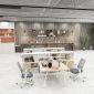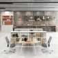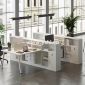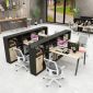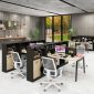Cụm Bàn Làm Việc 4 Người Không Gian Atom Space YCHIAS008 có mặt bàn và chân tủ được làm từ gỗ MDF phủ Melamine cho bề mặt sản phẩm rất đẹp mắt, chống nước. Kết hợp hệ khung chân thép sơn tĩnh điện chống ăn mòn hoá học, đảm bảo độ bền cao.
