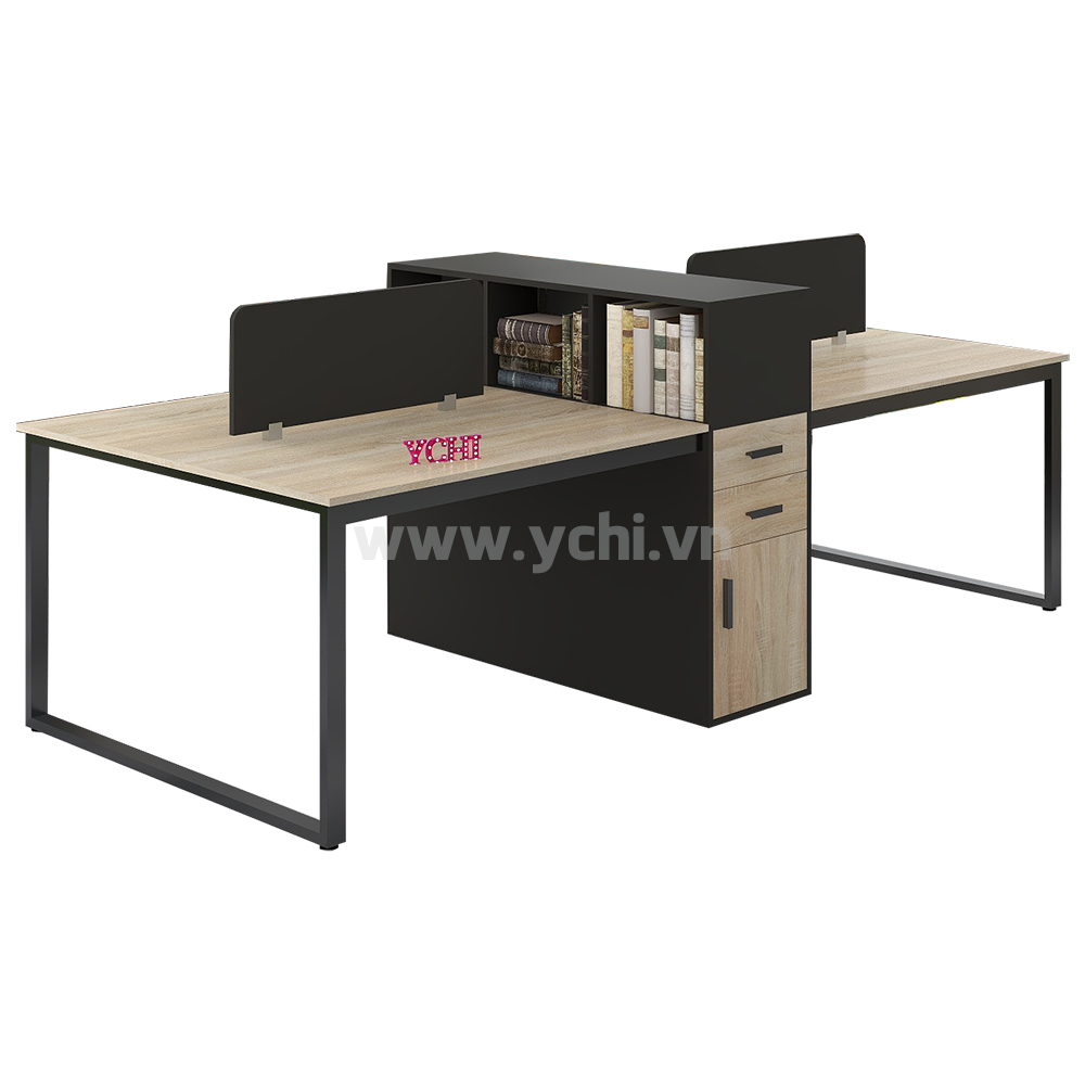 Cụm Bàn Làm Việc 4 Người Không Gian Basic Space YCHIBS010 (Tủ Trên) có kiểu dáng cơ bản cổ điển, thiết kế tối ưu hóa công năng phần kiến tạo không gian ngồi làm việc rộng rãi, thoải mái nhất cho người sử dụng. Khung chân vuông làm bằng sắt hộp có kết cấu chắc chắn. Chất liệu gỗ công nghiệp MDF cao cấp kết hợp khung chân sắt sơn tĩnh điện là yếu tố quyết định đến chất lượng vượt trội cũng như vẻ đẹp xuất sắc của sản phẩm. Bàn có 1 tủ liền bàn với nhiều ngăn kéo, ngăn kệ giúp tối ưu không gian sử dụng, đễ dàng sắp xếp các dụng cụ văn phòng, cho bạn một không gian sử dụng lớn hơn trong 1 diện tích nhất định.
