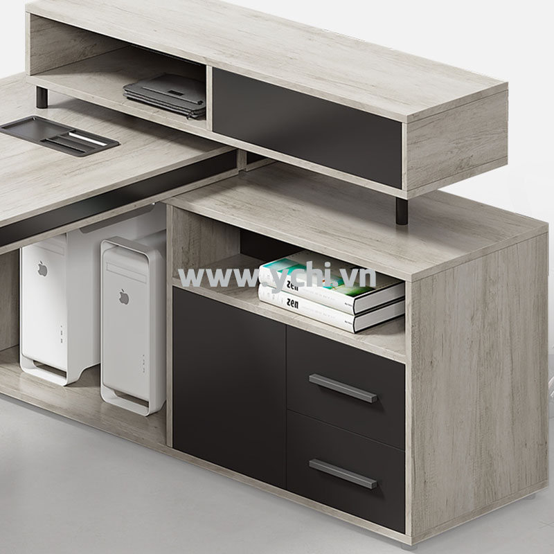 Cụm Bàn Làm Việc 4 Người Không Gian Cone Space YCHICS018 với chân thép sơn tĩnh điện, lắp ráp ngàm chắc chắn, kết hợp với mặt bàn được làm từ gỗ tiêu chuẩn. Bàn có thiết kế hiện đại với kích thước tiêu chuẩn phù hợp với mọi loại ghế văn phòng, phù hợp với nhiều không gian văn phòng. Bàn có tủ liền với mặt bàn, giúp dễ dàng lưu trữ vật dụng của mỗi nhân viên. Thêm vào đó là mặt bàn dày 10cm, cho một kết cấu chắc chắn, sang trọng.