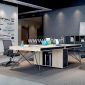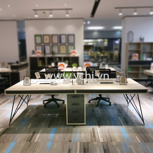 Cụm Bàn Làm Việc 4 Người Không Gian Geometric Space YCHIGS005 mặt bàn và chân tủ được làm từ gỗ MDF phủ Melamine cho bề mặt sản phẩm rất đẹp mắt, chống nước. Kết hợp hệ khung chân thép sơn tĩnh điện chống ăn mòn hoá học, đảm bảo độ bền cao.