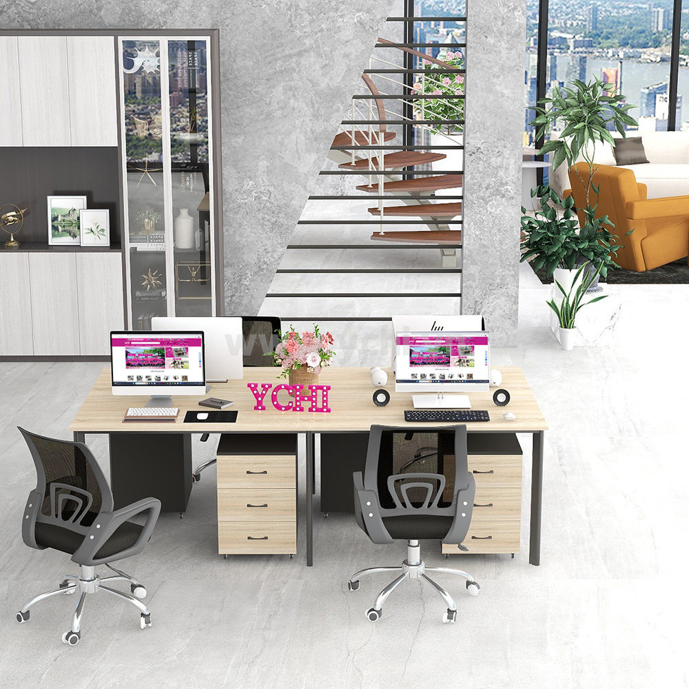 Cụm Bàn Làm Việc 4 Người Không Gian Oval Space YCHIOS008 có kiểu dáng nhỏ gọn, tối ưu diện tích hiệu quả là giải pháp thông minh cho không gian văn phòng hiện đại. Mẫu bàn làm việc có mặt bàn được làm bằng gỗ MDF phủ Melamine bền đẹp, cùng với đó là bộ khung bằng thép sơn tĩnh điện chắc chắn, chống ăn mòn hóa học, độ bền cao, cho bạn không gian thoải mái làm việc.