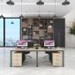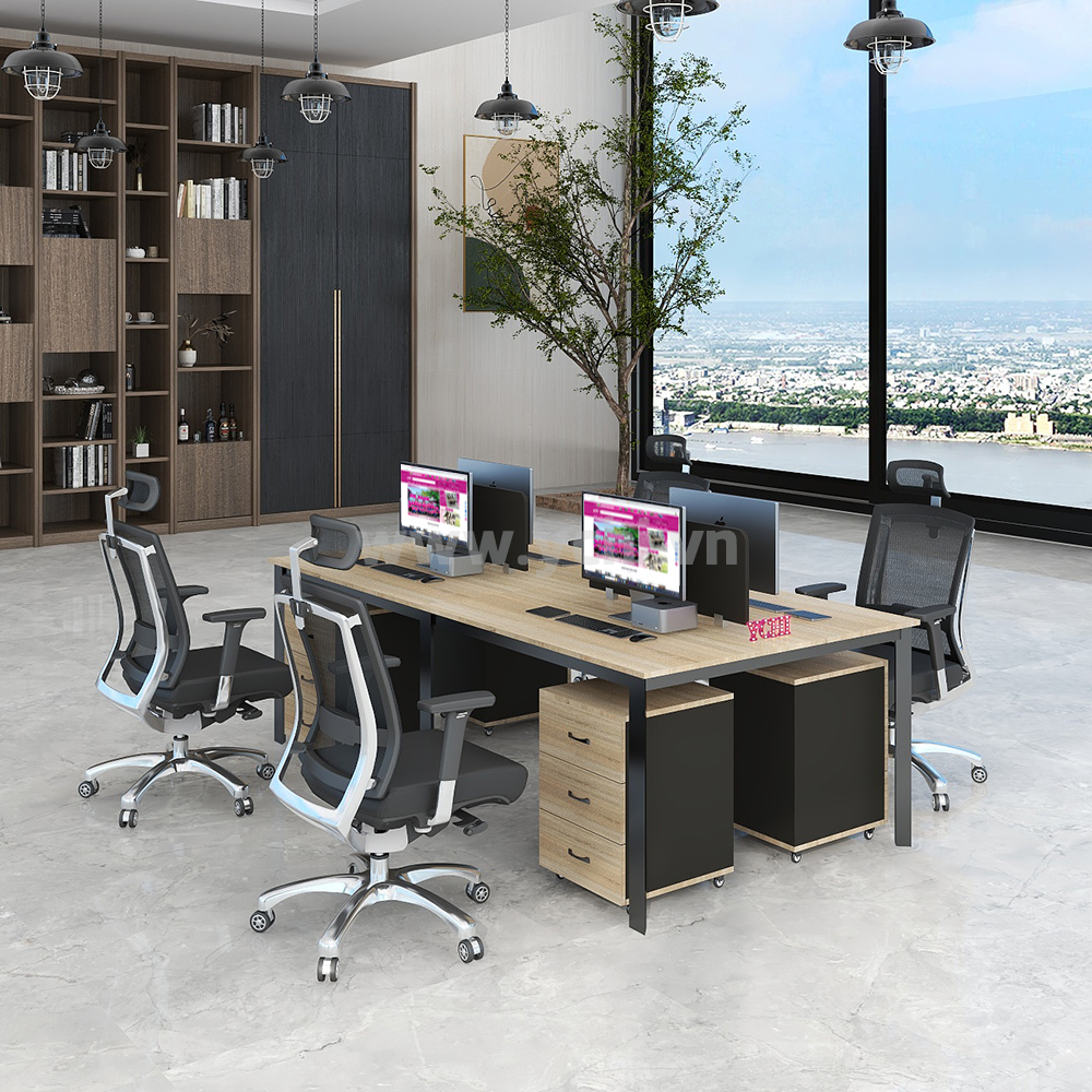 Cụm Bàn Làm Việc 4 Người Không Gian Triangle Space YCHITS005 với mặt bàn gỗ MDF phủ Melamine màu gỗ tự nhiên luôn có một vẻ đẹp riêng. Khung chân thép sơn tĩnh điện với cơ cấu ngàm lắp ráp dễ dàng, tiện dụng nhưng vẫn chắc chắn.