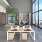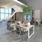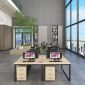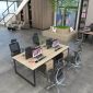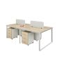 Cụm Bàn Làm Việc 4 Người Không Gian Triangle Space YCHITS006 với mặt bàn gỗ MDF phủ Melamine màu gỗ tự nhiên luôn có một vẻ đẹp riêng. Khung chân thép sơn tĩnh điện với cơ cấu ngàm lắp ráp dễ dàng, tiện dụng nhưng vẫn chắc chắn.