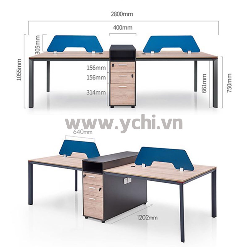 Chi tiết sản phẩm Cụm Bàn Làm Việc 4 Người Không Gian Triangle Space YCHITS015