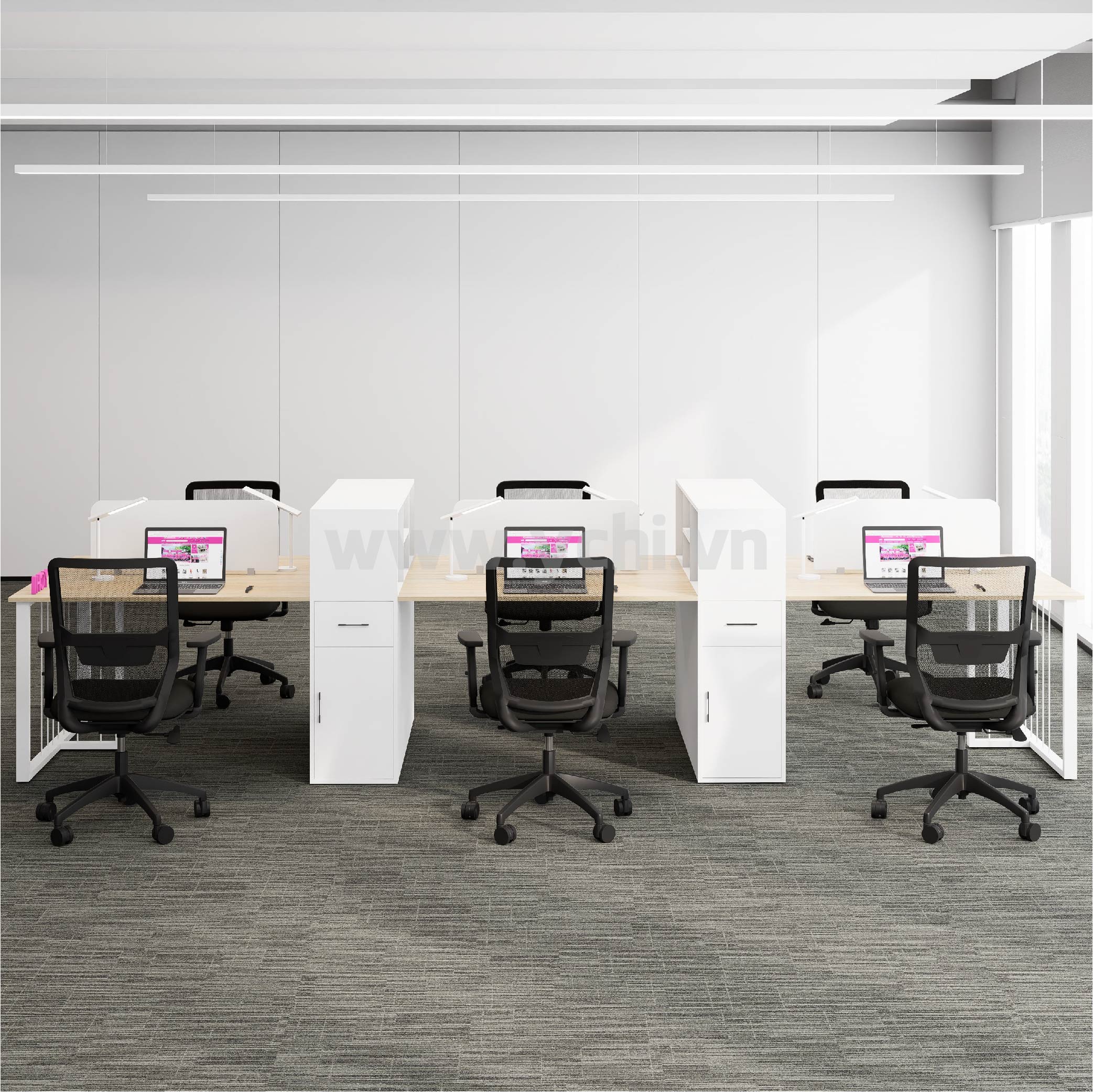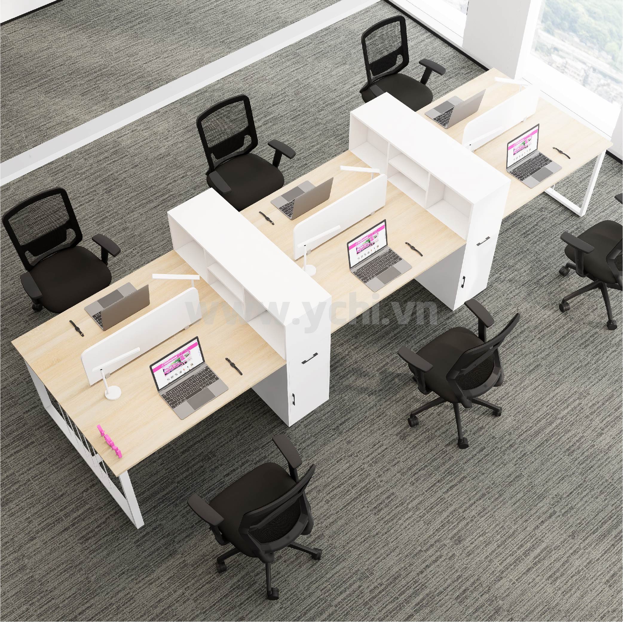Bàn bao gồm vách ngăn trên mặt bàn, lỗ dẫn điện tròn (không bắt buộc)