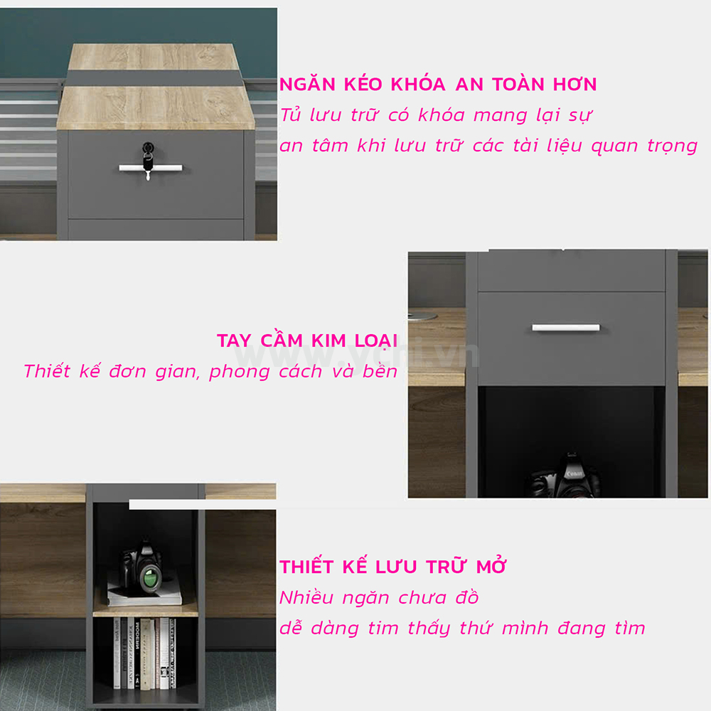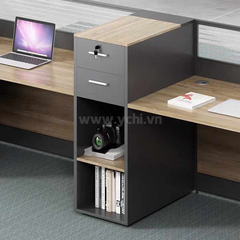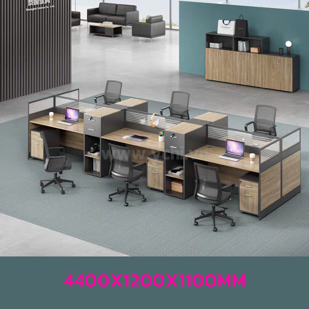 Sản phẩm gồm mặt bàn, vách ngăn bàn, tủ di động.