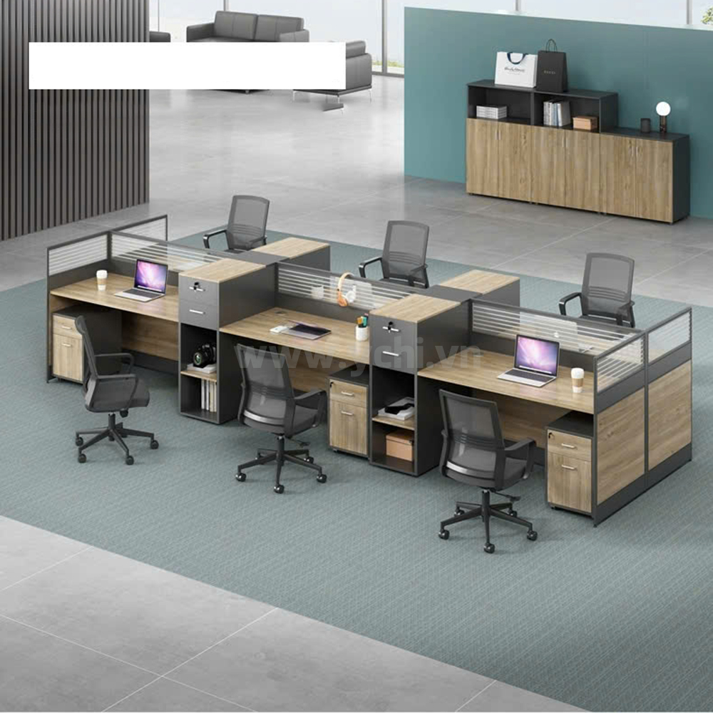 Bàn Làm Việc Cụm 6 Người Không Gian Panel Space YCHIJS044 giúp cho nhân viên có khoảng không gian riêng để tập trung làm việc, từ đó mà năng suất công việc cũng được nâng cao. Lúc cần trao đổi thông tin liên quan đến công việc, những cụm bàn chia ngăn lại trở thành không gian để có thể họp bàn, trao đổi thông tin một cách thuận lợi và nhanh chóng. Chất liệu gỗ MDF phủ Melamine sở hữu nhiều ưu việt như chống trầy, chống nước, bền màu cho không gian làm việc chuyên nghiệp, kết hợp hệ khung vách ngăn nhôm định hình 50, sơn tĩnh điện, đảm bảo độ bền cao, tạo nên một kết cấu vững chắc, an tâm sử dụng.
