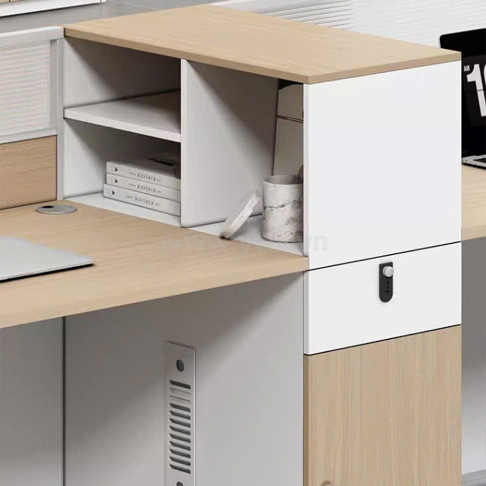 Cụm Bàn Làm Việc 6 Người Không Gian Panel Space YCHIJS063 giúp cho nhân viên có khoảng không gian riêng để tập trung làm việc, từ đó mà năng suất công việc cũng được nâng cao. Lúc cần trao đổi thông tin liên quan đến công việc, những cụm bàn chia ngăn lại trở thành không gian để có thể họp bàn, trao đổi thông tin một cách thuận lợi và nhanh chóng. Chất liệu gỗ MDF phủ Melamine sở hữu nhiều ưu việt như chống trầy, chống nước, bền màu cho không gian làm việc chuyên nghiệp, kết hợp hệ khung vách ngăn nhôm định hình 50, sơn tĩnh điện, đảm bảo độ bền cao, tạo nên một kết cấu vững chắc, an tâm sử dụng.