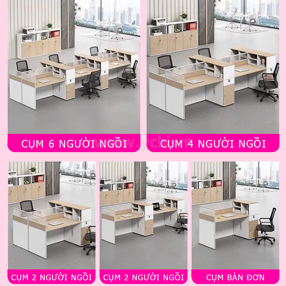 Cụm Bàn Làm Việc 6 Người Không Gian Panel Space YCHIJS063 có nhiều kích thước khác nhau và nhiều màu sắc để khách hàng quyết định. Bảng màu sắc được cập nhật thường xuyên đảm bảo bắt kịp xu hướng nội thất mới. Đội ngũ nhân viên tư vấn chuyên nghiệp của YCHI luôn sẵn sàng hỗ trợ khách hàng, đưa ra những lời khuyên hữu ích để bạn có sản phẩm ưng ý nhất. Liên hệ Zalo bên cạnh hoặc gọi trực tiếp Hotline 0974.590.827, YCHI luôn sẵn sàng giải đáp các câu hỏi của khách hàng.