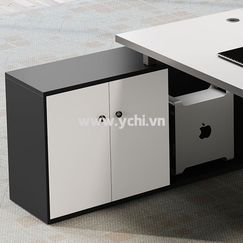 Bàn Làm Việc Cụm 6 Người Hệ Không Gian Cone Space YCHICS031 (Tủ Dưới Kéo Dài) có kiểu dáng hiện đại, thiết kế tối ưu hóa công năng phần kiến tạo không gian ngồi làm việc rộng rãi, thoải mái nhất cho người sử dụng. Chất liệu gỗ công nghiệp MDF cao cấp kết hợp khung chân sắt sơn tĩnh điện là yếu tố quyết định đến chất lượng vượt trội cũng như vẻ đẹp xuất sắc của sản phẩm. Bàn có kết hợp tủ liền bàn, giúp lưu trữ vật dụng một cách dễ dàng.