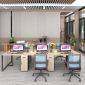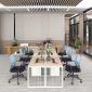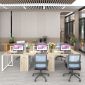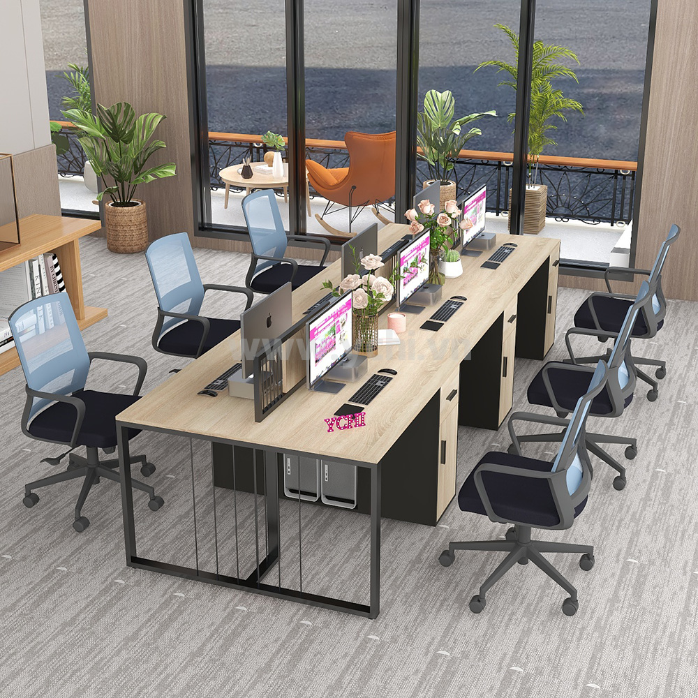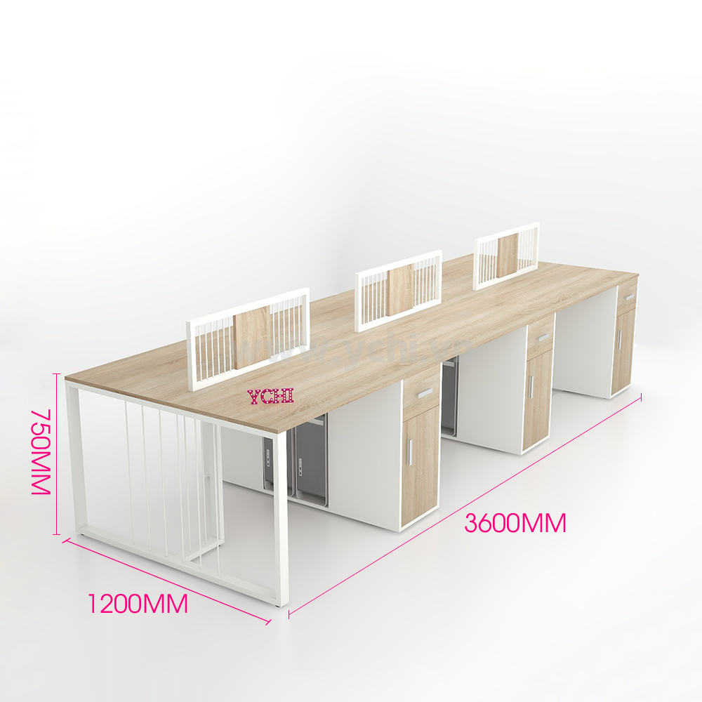 Bàn Làm Việc Cụm 6 Người Không Gian Eke Space YCHIES003 với mặt bàn và chân tủ được làm từ gỗ MDF phủ Melamine cho bề mặt sản phẩm rất đẹp mắt, chống nước. Kết hợp hệ khung chân thép sơn tĩnh điện chống ăn mòn hoá học, đảm bảo độ bền cao.