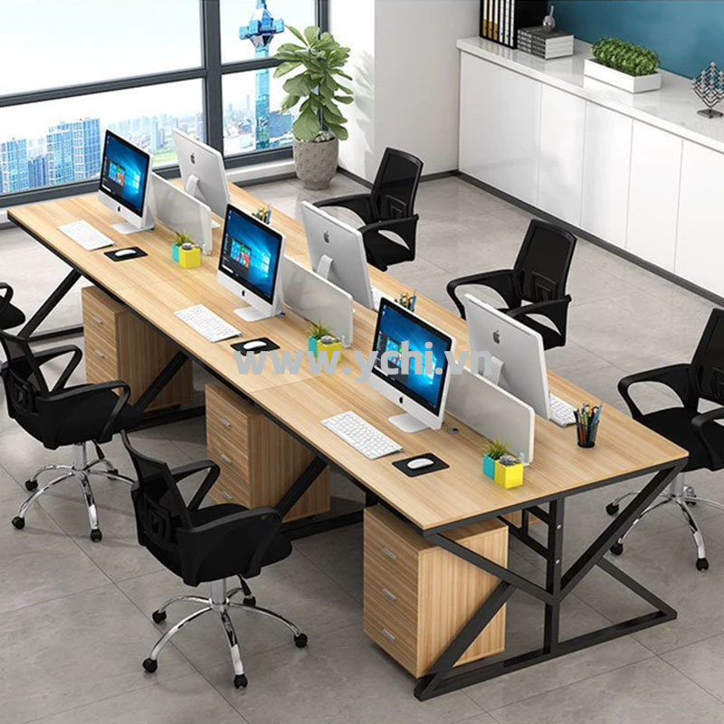 Bàn Làm Việc Cụm 6 Người Không Gian K Space YCHIKS009 (1 K) có kiểu dáng hiện đại, thiết kế tối ưu hóa công năng phần kiến tạo không gian ngồi làm việc rộng rãi, thoải mái nhất cho người sử dụng. Khung chân chữ K vừa có kết cấu chắc chắn, vừa tạo điểm nhấn chính cho sản phẩm. Chất liệu gỗ công nghiệp MDF cao cấp kết hợp khung chân sắt sơn tĩnh điện là yếu tố quyết định đến chất lượng vượt trội cũng như vẻ đẹp xuất sắc của sản phẩm.