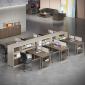 Bao gồm 6 tủ liền bàn, lỗ dẫn điện trên mặt bàn (không bắt buộc), 6 vách ngăn gỗ