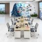 Bàn Làm Việc Cụm 6 Người Không Gian Triangle Space YCHITS009 với mặt bàn gỗ MDF phủ Melamine màu gỗ tự nhiên luôn có một vẻ đẹp riêng. Khung chân thép sơn tĩnh điện với cơ cấu ngàm lắp ráp dễ dàng, tiện dụng nhưng vẫn chắc chắn.