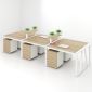 Bàn Làm Việc Cụm 6 Người Không Gian V Space YCHIVS004 với mặt bàn và chân tủ được làm từ gỗ MDF phủ Melamine cho bề mặt sản phẩm rất đẹp mắt, chống nước. Kết hợp hệ khung chân thép sơn tĩnh điện chống ăn mòn hoá học, đảm bảo độ bền cao.