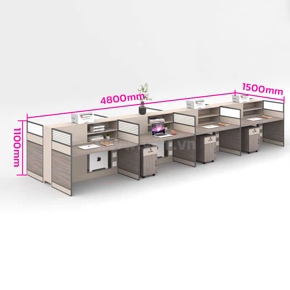 Sản phẩm gồm mặt bàn, vách ngăn bàn, tủ di động.