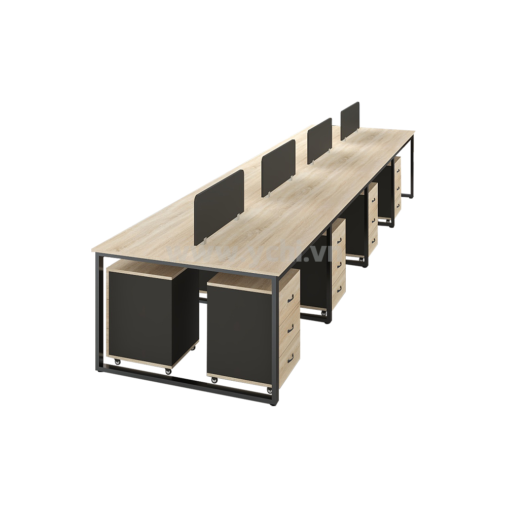 Bàn Làm Việc Cụm 8 Người Không Gian Basic Space YCHIBS006 mặt bàn và chân tủ được làm từ gỗ MDF phủ Melamine cho bề mặt sản phẩm rất đẹp mắt, chống nước. Kết hợp hệ khung chân thép sơn tĩnh điện với cơ cấu ngàm lắp ráp dễ dàng, bề mặt phủ lớp sơn tĩnh điện cao cấp chống ăn mòn hoá học, đảm bảo độ bền cao.