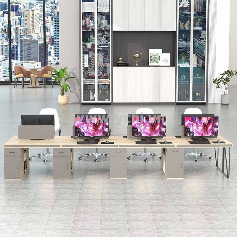 Bàn Làm Việc Cụm 8 Người Không Gian Elegant Space YCHIHS005 mang phong cách hiện đại, thiết kế sáng tạo với phần khung bo cong các góc mềm mại, làm cho không gian văn phòng trở nên sang trọng, lịch lãm, đẳng cấp. Đặc biệt, thiết kế mang đến sự hoàn hảo trong không gian sử dụng của từng nhân viên với đầy đủ hệ tủ liền bàn cho một không gian lưu trữ lớn.