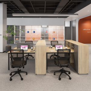 Bàn Cụm Làm Việc 8 Người Không Gian U Space YCHIUS012 mặt bàn và chân tủ được làm từ gỗ MDF phủ Melamine cho bề mặt sản phẩm rất đẹp mắt, chống nước. Kết hợp hệ khung chân thép sơn tĩnh điện với cơ cấu ngàm lắp ráp dễ dàng, bề mặt phủ lớp sơn tĩnh điện cao cấp chống ăn mòn hoá học, đảm bảo độ bền cao.