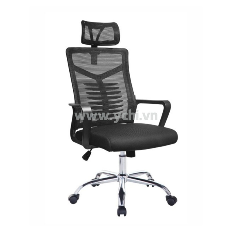 Mô tả: Ghế NV có gối đầu bọc lưới, mâm 1 cần, chân xoay inox 201.