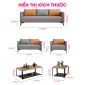Kích thước: bộ gồm 1 ghế dài, 1 ghế đôi, 1 ghế đơn