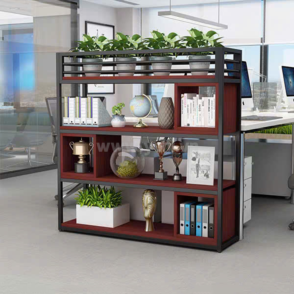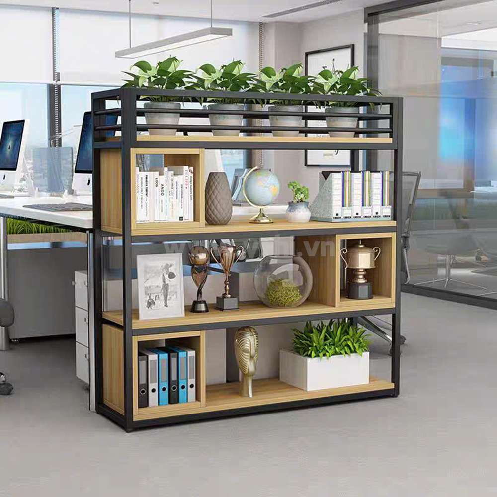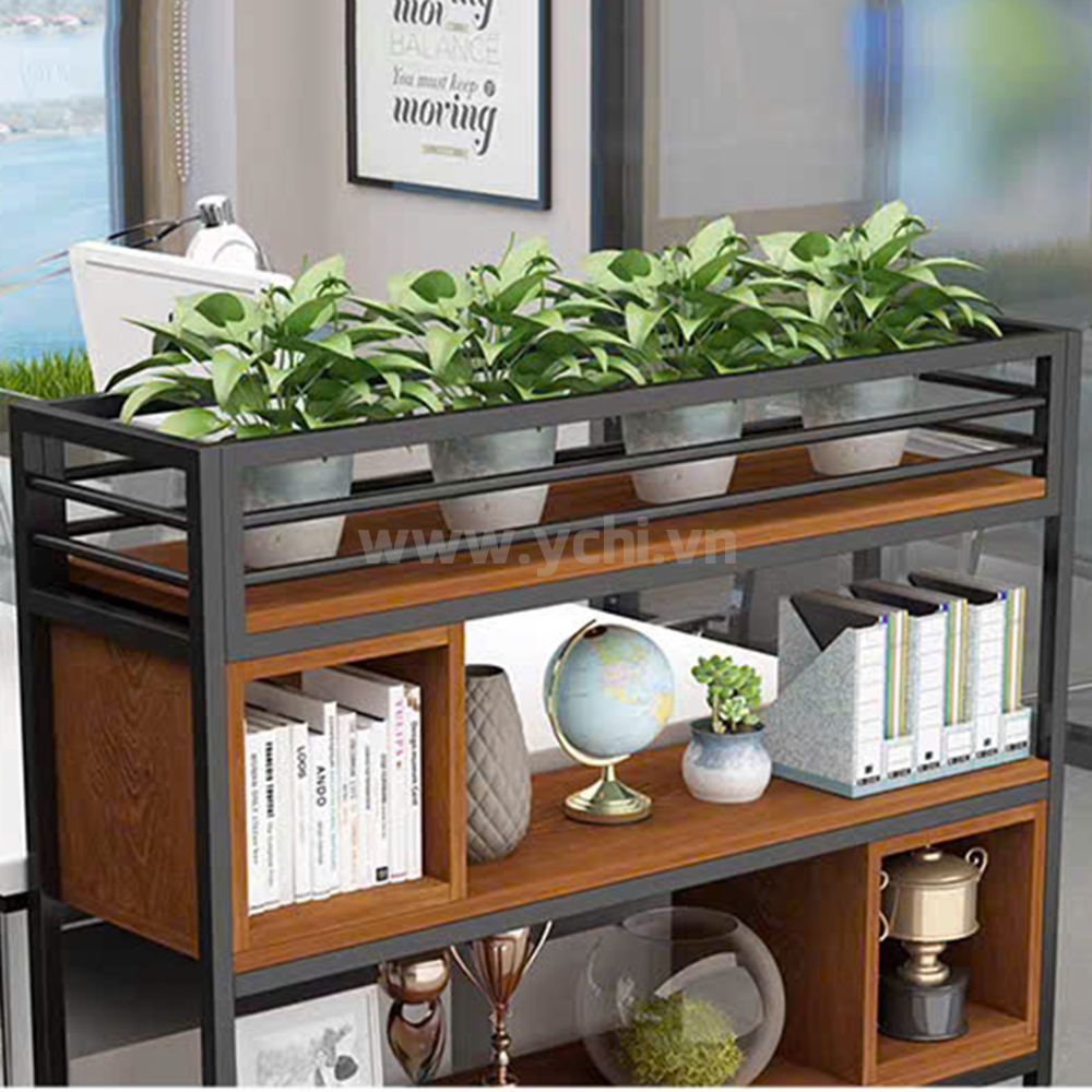 Biến hóa không gian làm việc trở nên khoáng đạt và đầy sức sống với mẫu Kệ Chậu Cây YCHICT018 – một thiết kế mang tính biểu tượng của phong cách nội thất văn phòng bền vững. Điểm độc đáo của YCHICT018 nằm ở cấu trúc khung sắt thanh mảnh nhưng cực kỳ kiên cố, kết hợp nhịp nhàng cùng các khối gỗ sồi sáng để tạo nên một hệ lưu trữ "mở" đầy ngẫu hứng. Khác với các dòng tủ truyền thống, sản phẩm lược bỏ hoàn toàn các mặt lưng bí bách, cho phép ánh sáng và không khí lưu thông tự do, biến chiếc tủ thành một vách ngăn nghệ thuật tinh tế. Tầng cao nhất được dành riêng làm bồn trồng cây tích hợp lưới sắt mắt cáo đen sang trọng, giúp phủ xanh tầm mắt và thanh lọc bụi mịn hiệu quả. Bên dưới, sự đan xen giữa các hộc kệ trống và ngăn tủ cánh mở tay nắm đen tối giản cung cấp không gian linh hoạt để trưng bày vật phẩm decor hoặc lưu trữ hồ sơ ngăn nắp. Được chế tác từ chất liệu cao cấp chống ẩm, tủ chậu cây không chỉ tối ưu hóa diện tích mà còn là chìa khóa mở ra nguồn năng lượng tích cực, giúp giảm bớt áp lực và khơi dậy đam mê cống hiến cho mọi nhân sự.