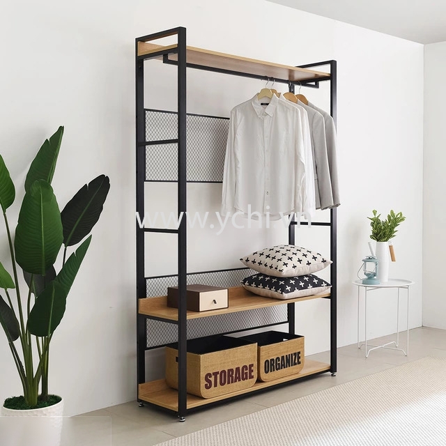 Kệ Quần Áo YCHICC006 được thiết kế hướng tới sự tiện nghi, đa năng. Phần trên kệ có móc treo quần áo, phần dưới có ngăn tủ, giúp bạn thoải mái phân loại, cất giữ đồ dùng. Khung sắt hộp hàn chắc chắn, sơn tĩnh điện kết hợp gỗ MDF cho không gian trở nên ấm cúng, đặc biệt sản phẩm lắp ráp rất dễ dàng, chỉ cần 5 phút bạn đã có thể có một chiếc kệ tủ quần áo thật đẹp trong phòng. Kiểu dáng hệ mở không cửa của Kệ Quần Áo YCHICC006 mang lại cho gia chủ sự tiện lợi trong việc cất giữa và lựa chọn quần áo, đây là một trong những xu hướng được rất nhiều người ưu chuộng trong vài năm gần đây.