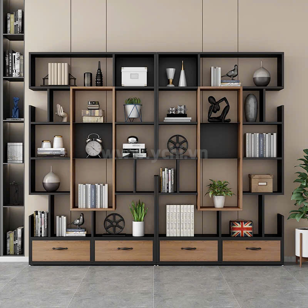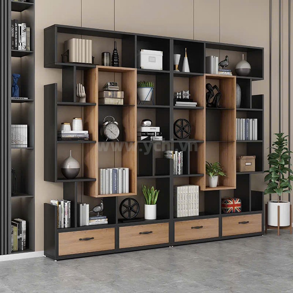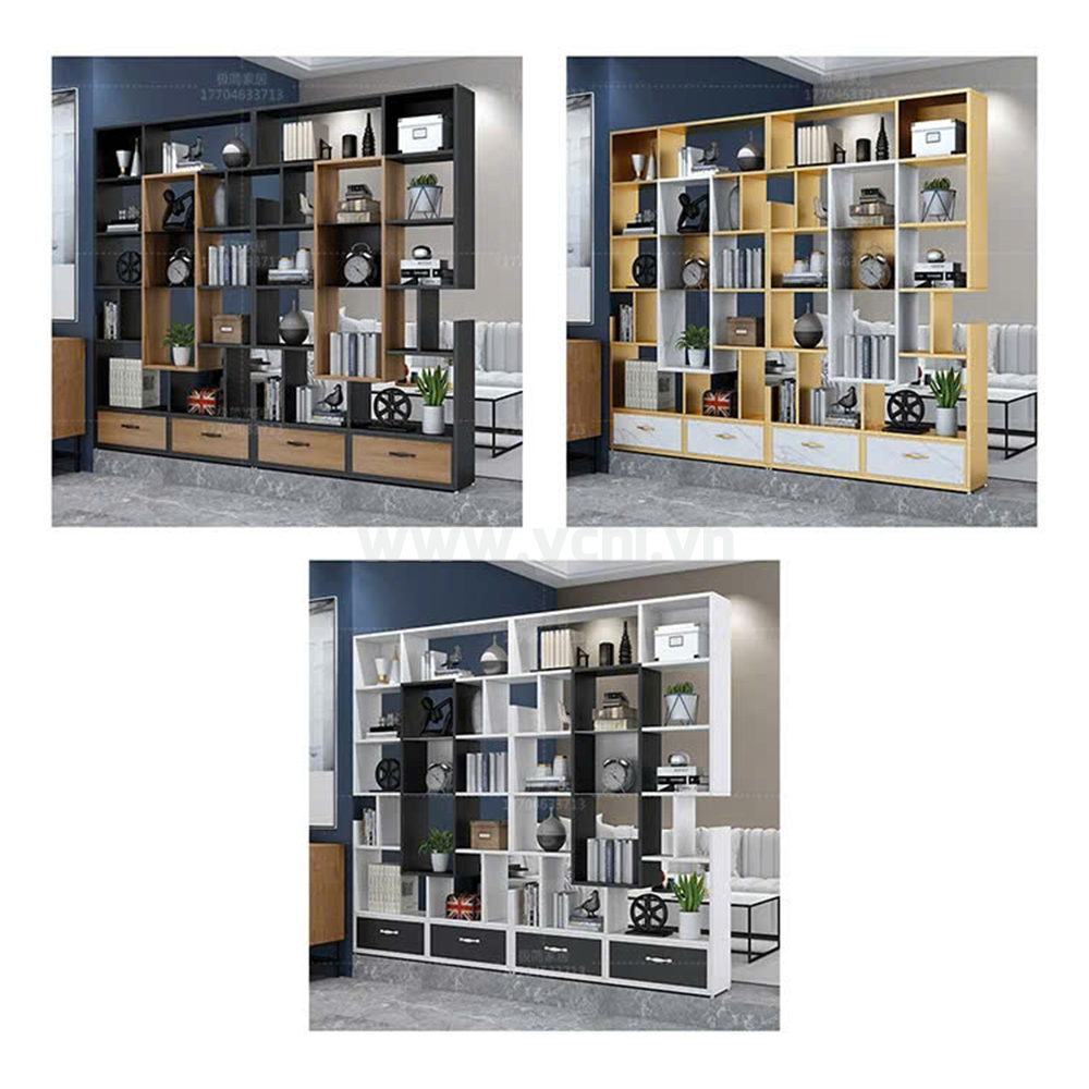 - Gỗ: MDF phủ melamine.