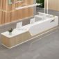 Quầy Lễ Tân YCHIRT040 có bên trong được thiết kế dành cho từ 1-2 nhân viên lễ tân sử dụng thoải mái và tiện lợi nhất. Sử dụng chất liệu gỗ công nghiệp cao cấp, khả năng chống ẩm mốc tốt, không lo mục ruỗng theo thời gian sử dụng đồng thời tạo vệ sinh lau chùi dễ dàng. Ấn tượng với sự phối hợp hai tông màu sáng và tối; mặt phía trước ốp gỗ và thanh nẹp trang trí vô cùng sang trọng và thanh lịch, khách hàng có thể nhìn thấy chúng trước khi quan sát xung quanh.