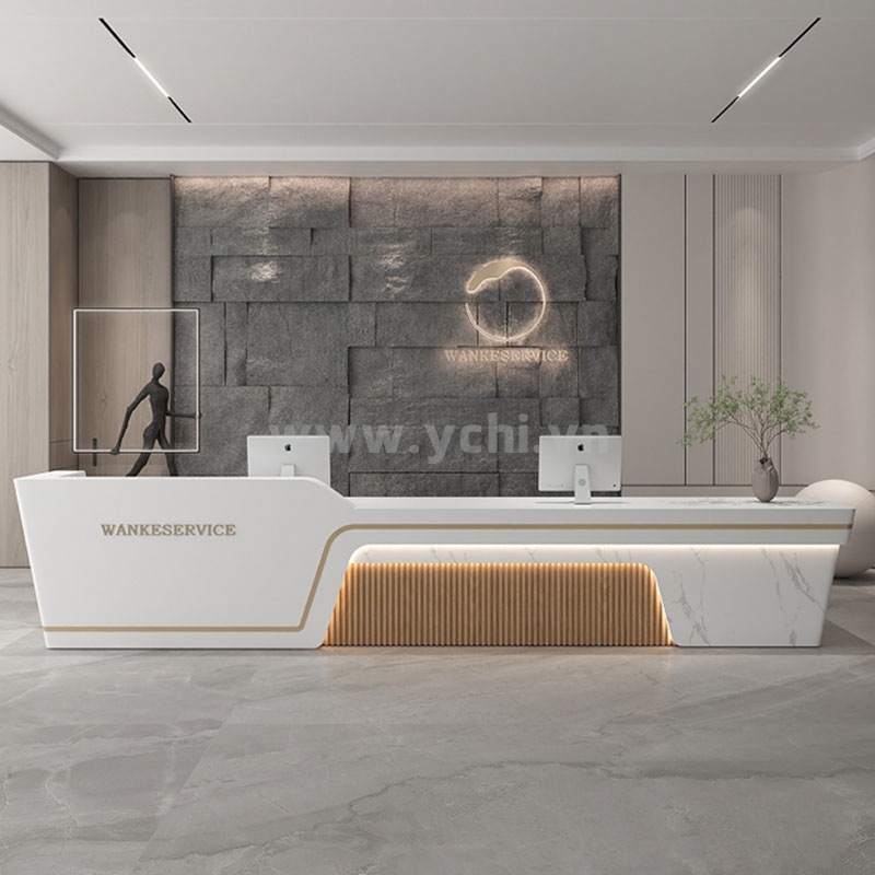 Quầy Lễ Tân YCHIRT042 có nhiều kích thước khác nhau và nhiều màu sắc để khách hàng quyết định. Bảng màu sắc được cập nhật thường xuyên đảm bảo bắt kịp xu hướng nội thất mới. Đội ngũ nhân viên tư vấn chuyên nghiệp của YCHI luôn sẵn sàng hỗ trợ khách hàng, đưa ra những lời khuyên hữu ích để bạn có sản phẩm ưng ý nhất. Liên hệ Zalo bên cạnh hoặc gọi trực tiếp Hotline 0906.919.068, YCHI luôn sẵn sàng giải đáp các câu hỏi của khách hàng.