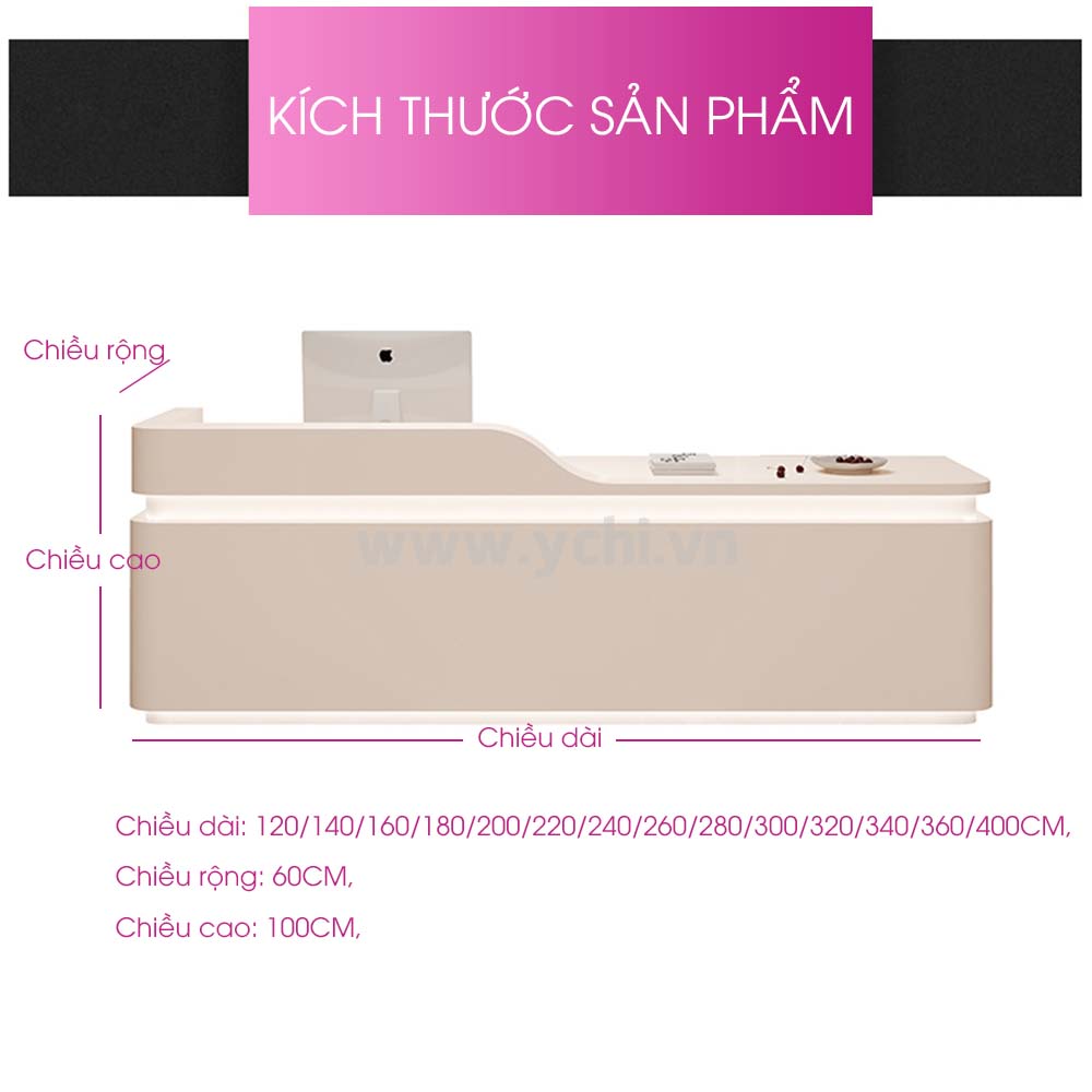 Quầy Lễ Tân YCHIRT049 có nhiều kích thước khác nhau và nhiều màu sắc để khách hàng quyết định. Bảng màu sắc được cập nhật thường xuyên đảm bảo bắt kịp xu hướng nội thất mới. Đội ngũ nhân viên tư vấn chuyên nghiệp của YCHI luôn sẵn sàng hỗ trợ khách hàng, đưa ra những lời khuyên hữu ích để bạn có sản phẩm ưng ý nhất. Liên hệ Zalo bên cạnh hoặc gọi trực tiếp Hotline 0906.919.068, YCHI luôn sẵn sàng giải đáp các câu hỏi của khách hàng.