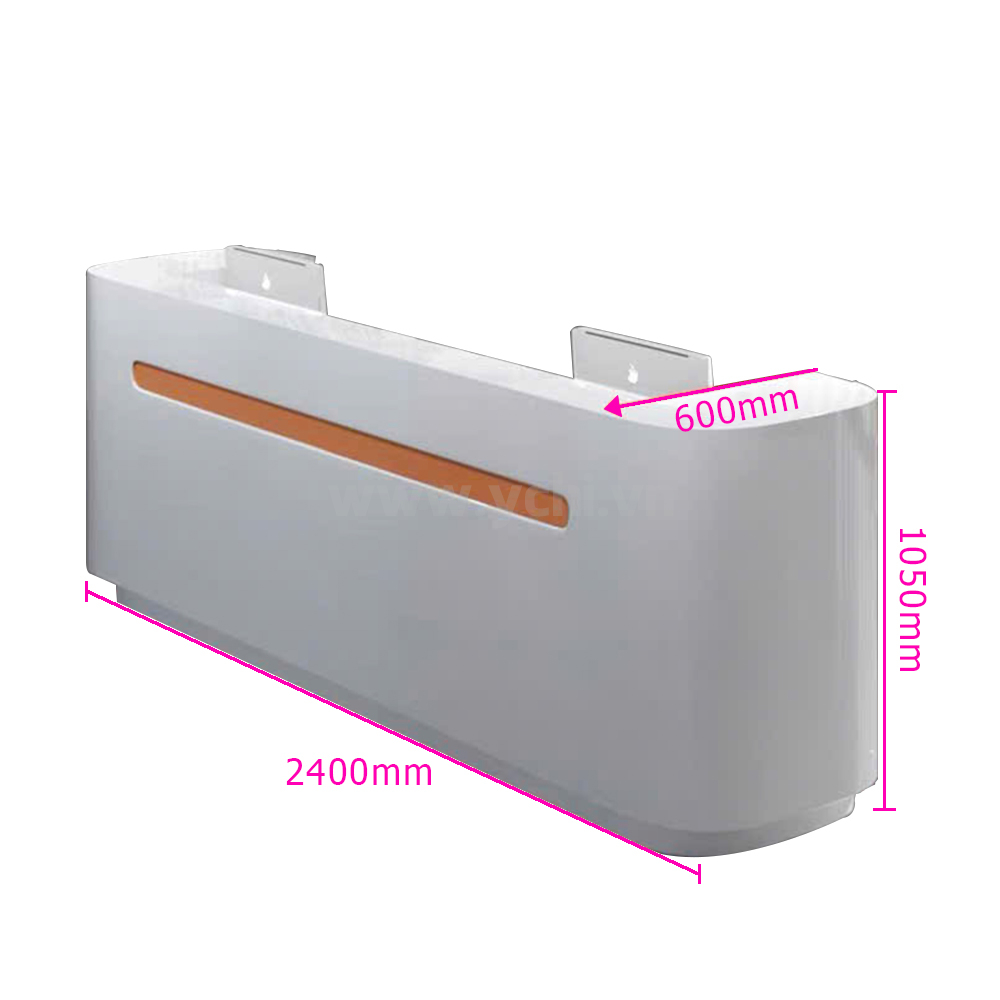 Quầy Lễ Tân YCHIRT097 có bên trong được thiết kế dành cho từ 1-2 nhân viên lễ tân sử dụng thoải mái và tiện lợi nhất. Sử dụng chất liệu gỗ công nghiệp cao cấp, khả năng chống ẩm mốc tốt, không lo mục ruỗng theo thời gian sử dụng đồng thời tạo vệ sinh lau chùi dễ dàng. Ấn tượng với sự phối hợp hai tông màu sáng và tối; mặt phía trước ốp gỗ và thanh nẹp trang trí vô cùng sang trọng và thanh lịch, khách hàng có thể nhìn thấy chúng trước khi quan sát xung quanh.
